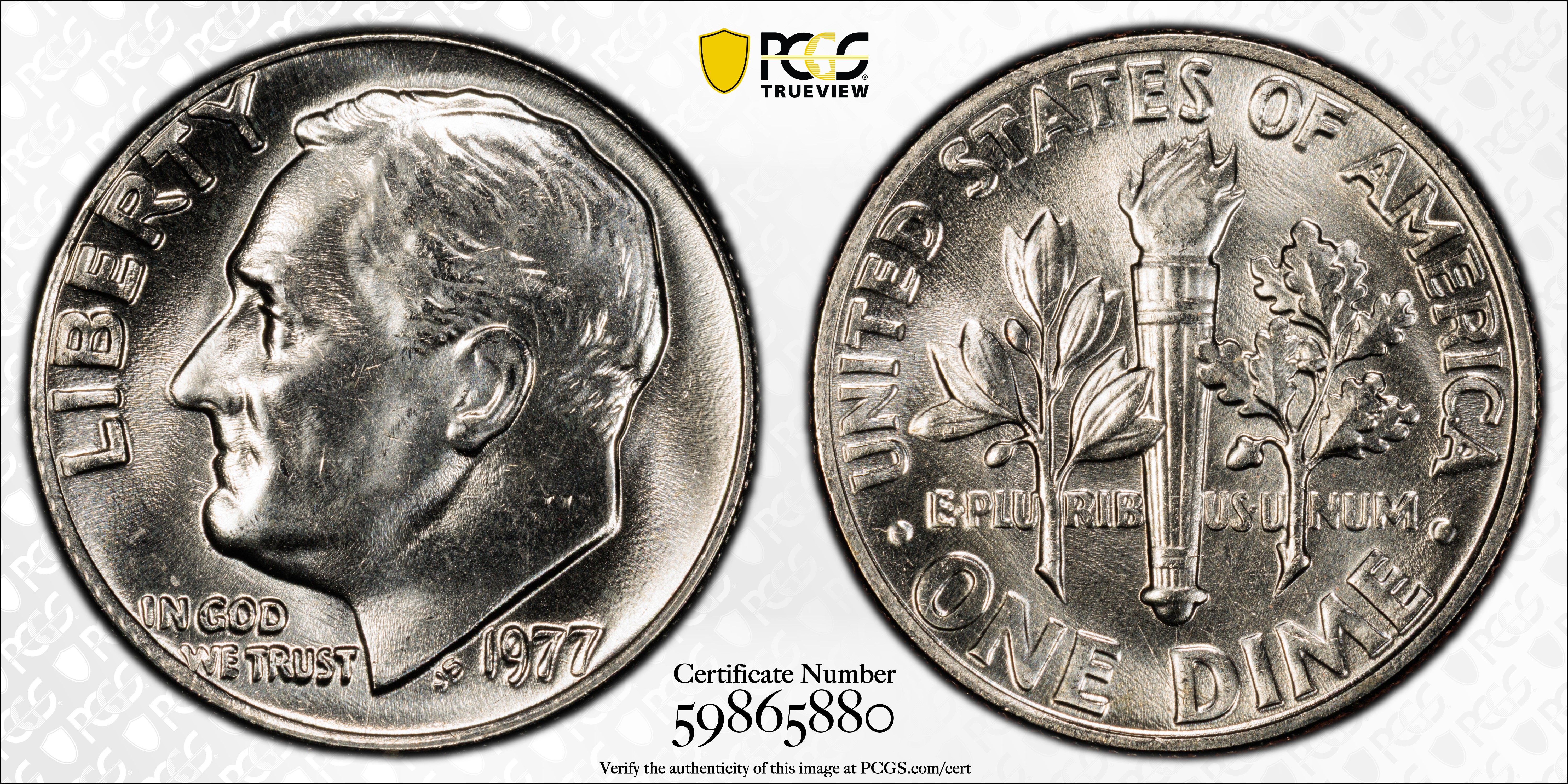 1977 10C, FB MS66FB Certification #59865880, PCGS #85151