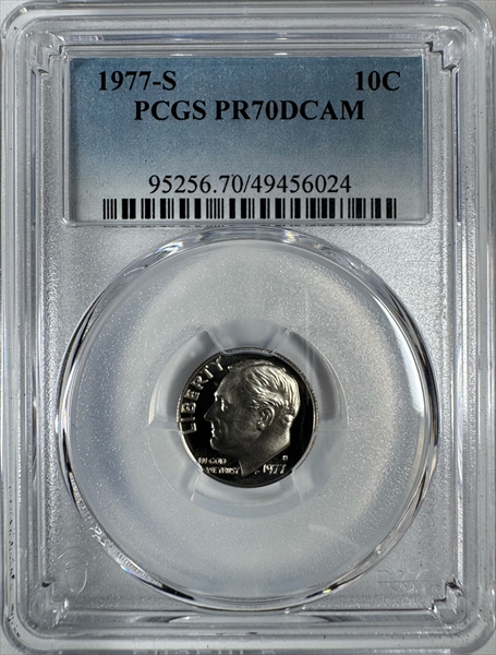 1977-S 10C, DCAM PR70DCAM Certification #49456024, PCGS #95256