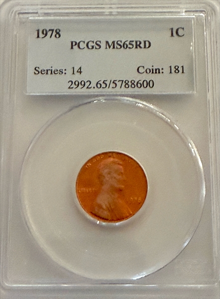 1978 1C, RD MS65RD Certification #05788600, PCGS #2992