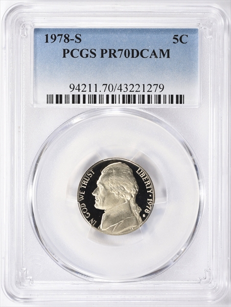 The 1978-S Proof Jefferson Nickel is easy to obtain in grades up to PR69 deep cameo. In perfect PR70 deep cameo condition they are scarcer but many examples exist and most serious Jefferson Nickel collectors acan afford an example in this grade.