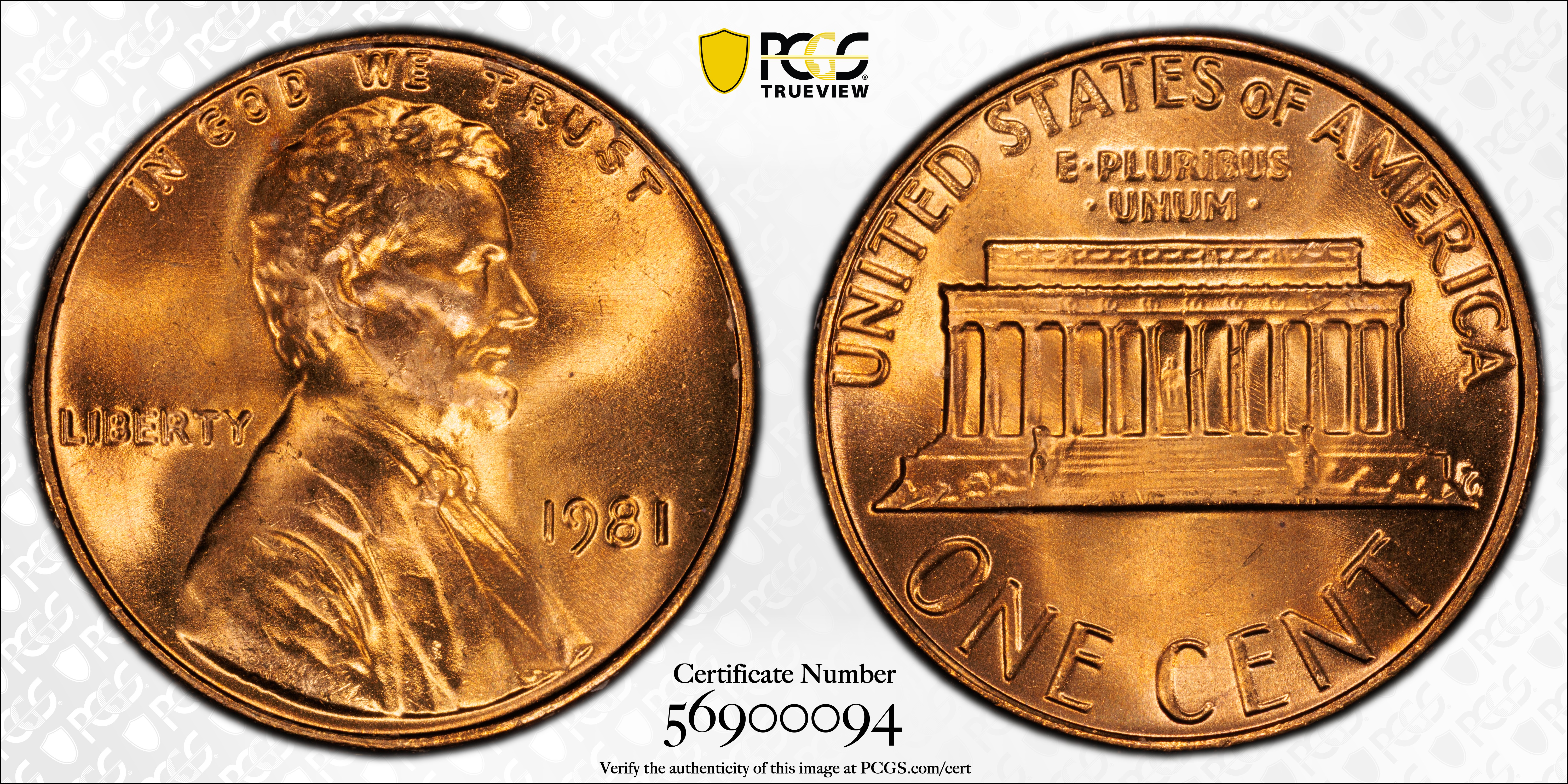 1981 1C, RD MS66RD Certification #56900094, PCGS #3043