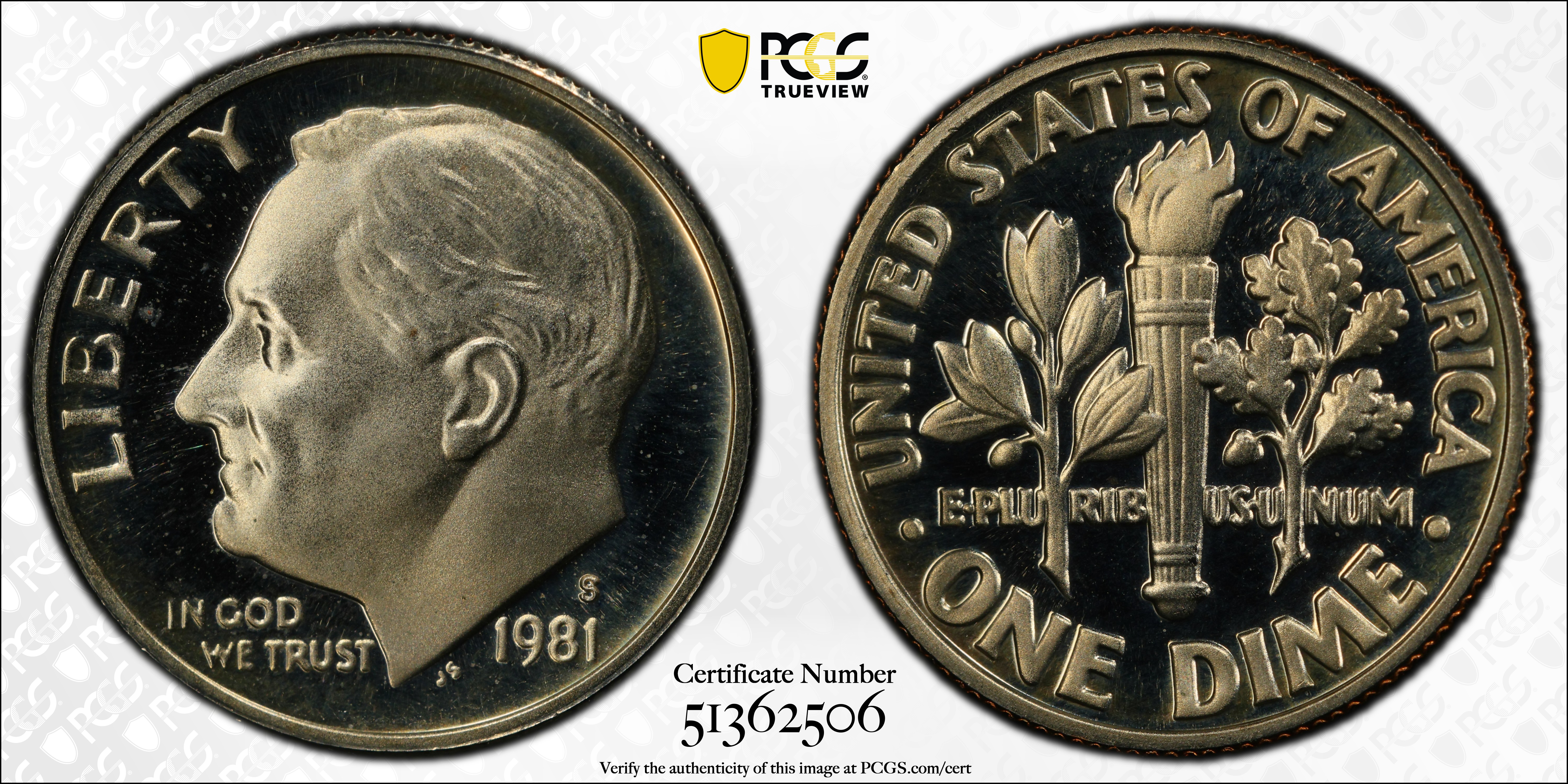 1981-S 10C Type 1, DCAM PR69DCAM Certification #51362506, PCGS #95261