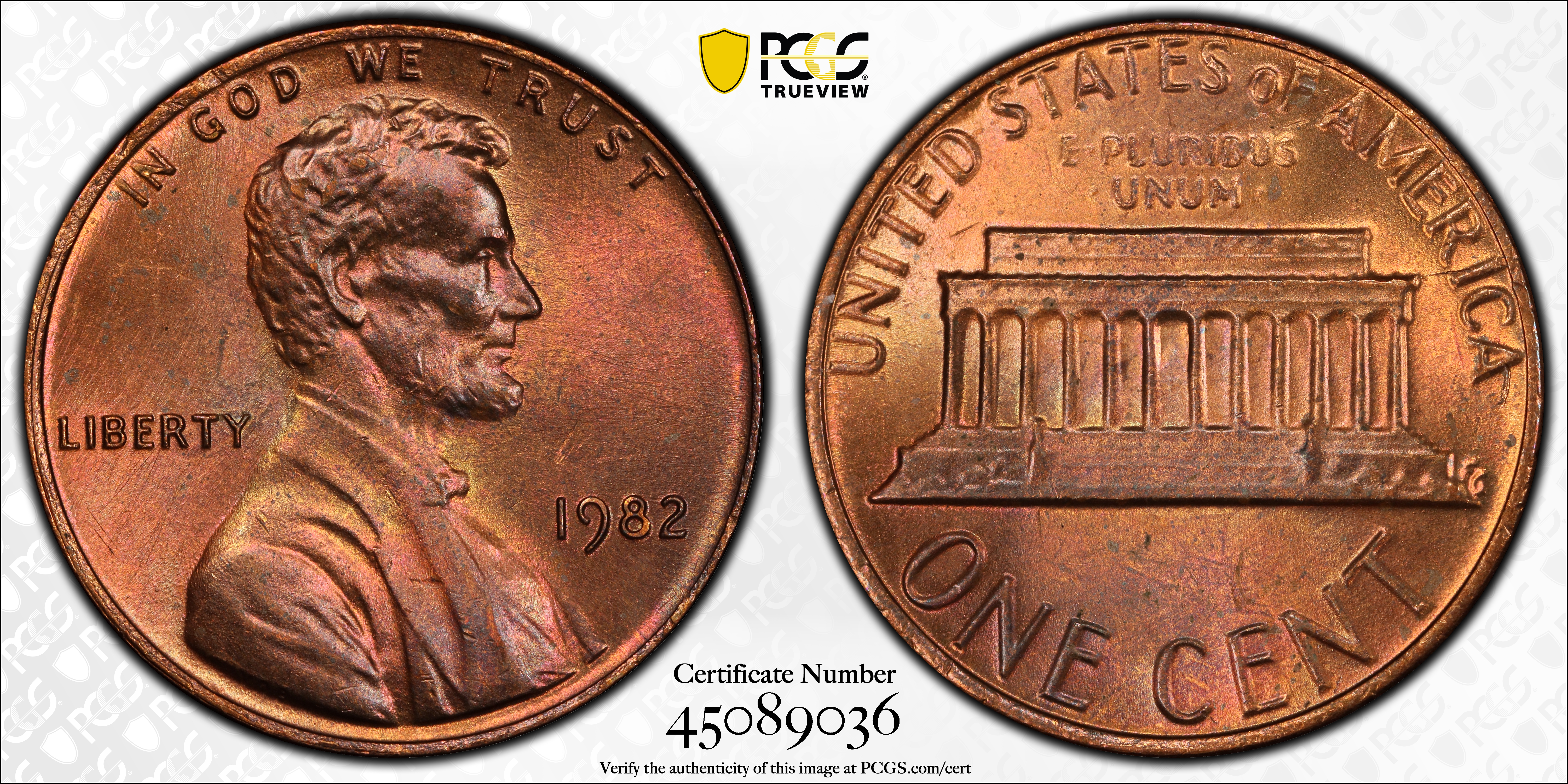 1982 1C Bronze, Small Date, RB MS65RB Certification #45089036, PCGS #146019