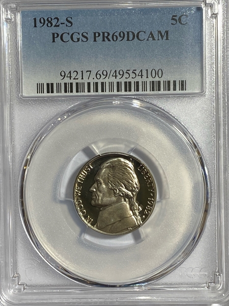 1982-S 5C, DCAM PR69DCAM Certification #49554100, PCGS #94217