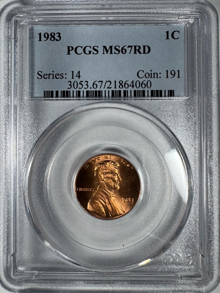 1983 1C, RD MS67RD Certification #21864060, PCGS #3053