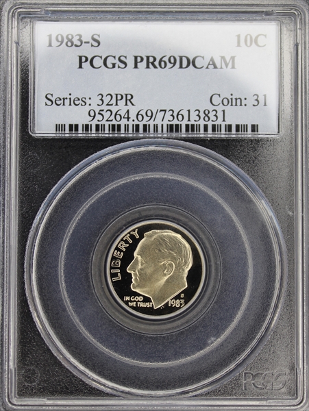 1983-S 10C, DCAM PR69DCAM Certification #73613831, PCGS #95264