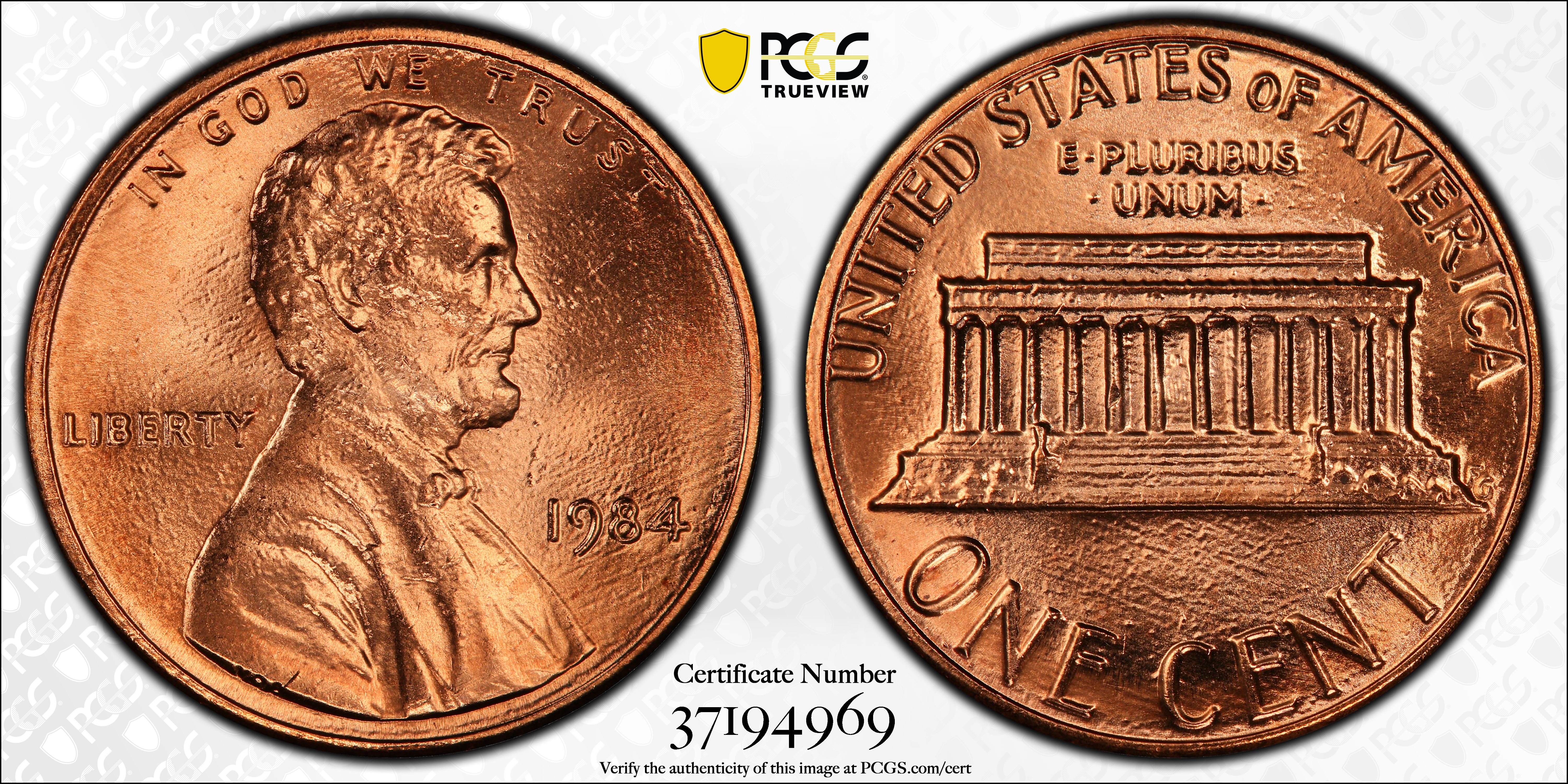 1984 1C, RD MS67+ RD Certification #37194969, PCGS #3059