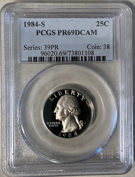 1984-S 25C, DCAM PR69DCAM Certification #73801108, PCGS #96020