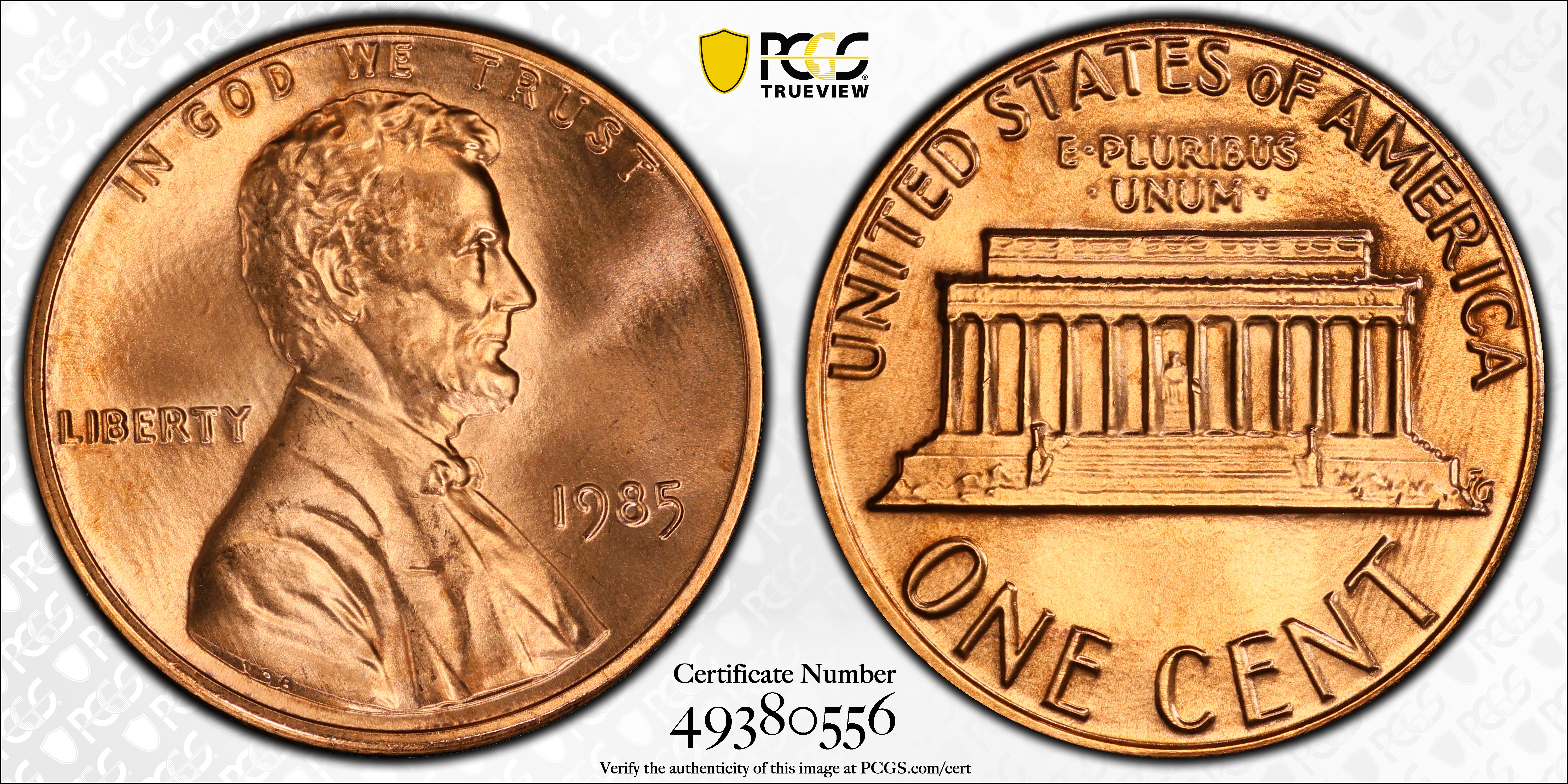 1985 1C, RD MS68RD Certification #49380556, PCGS #3071