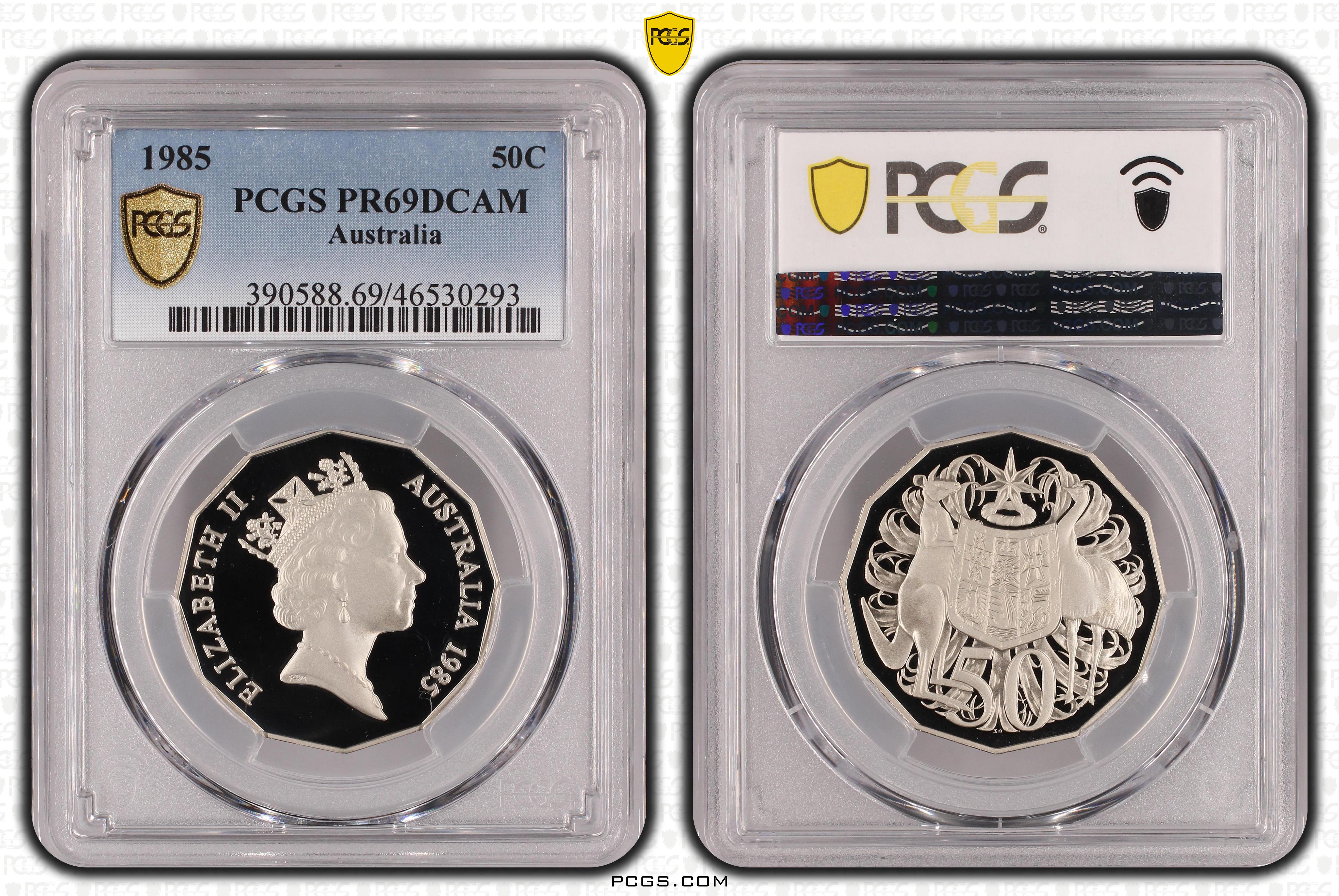 1985 50C, DCAM PR69DCAM Certification #46530293, PCGS #390588