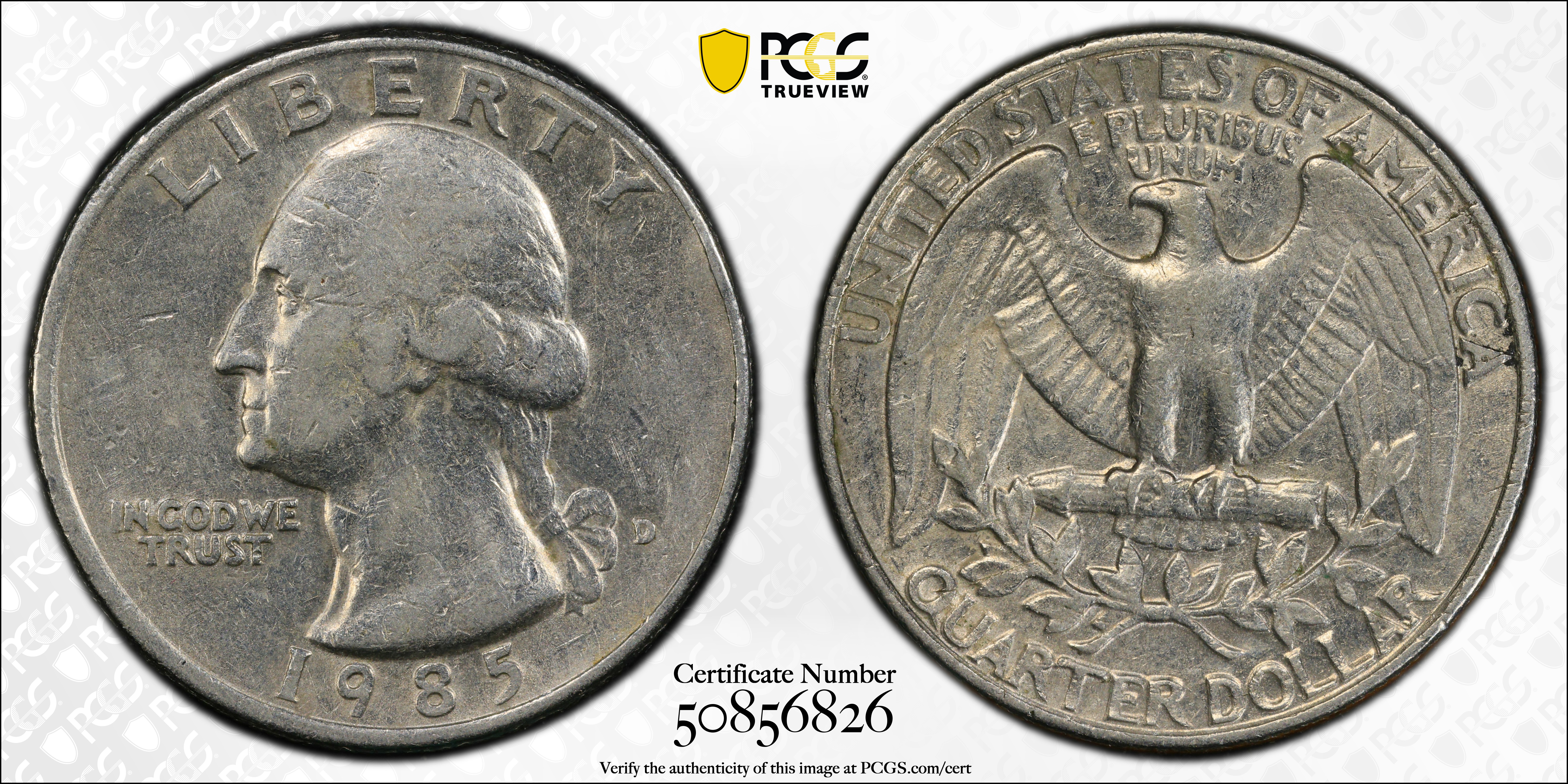 1985-D 25C N1 Certification #50856826, PCGS #5919