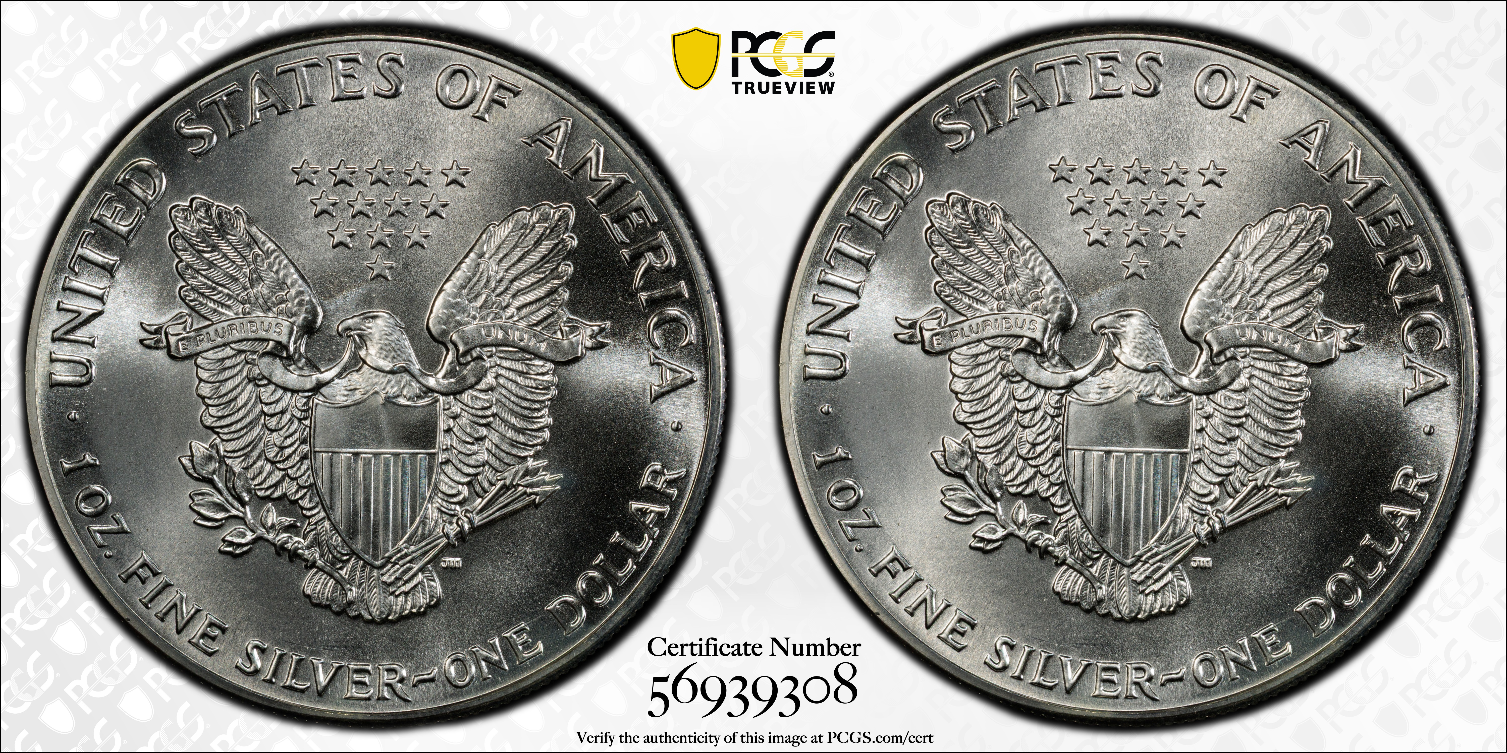 1986 $1 Silver Eagle MS68 Certification #56939308, PCGS #9801