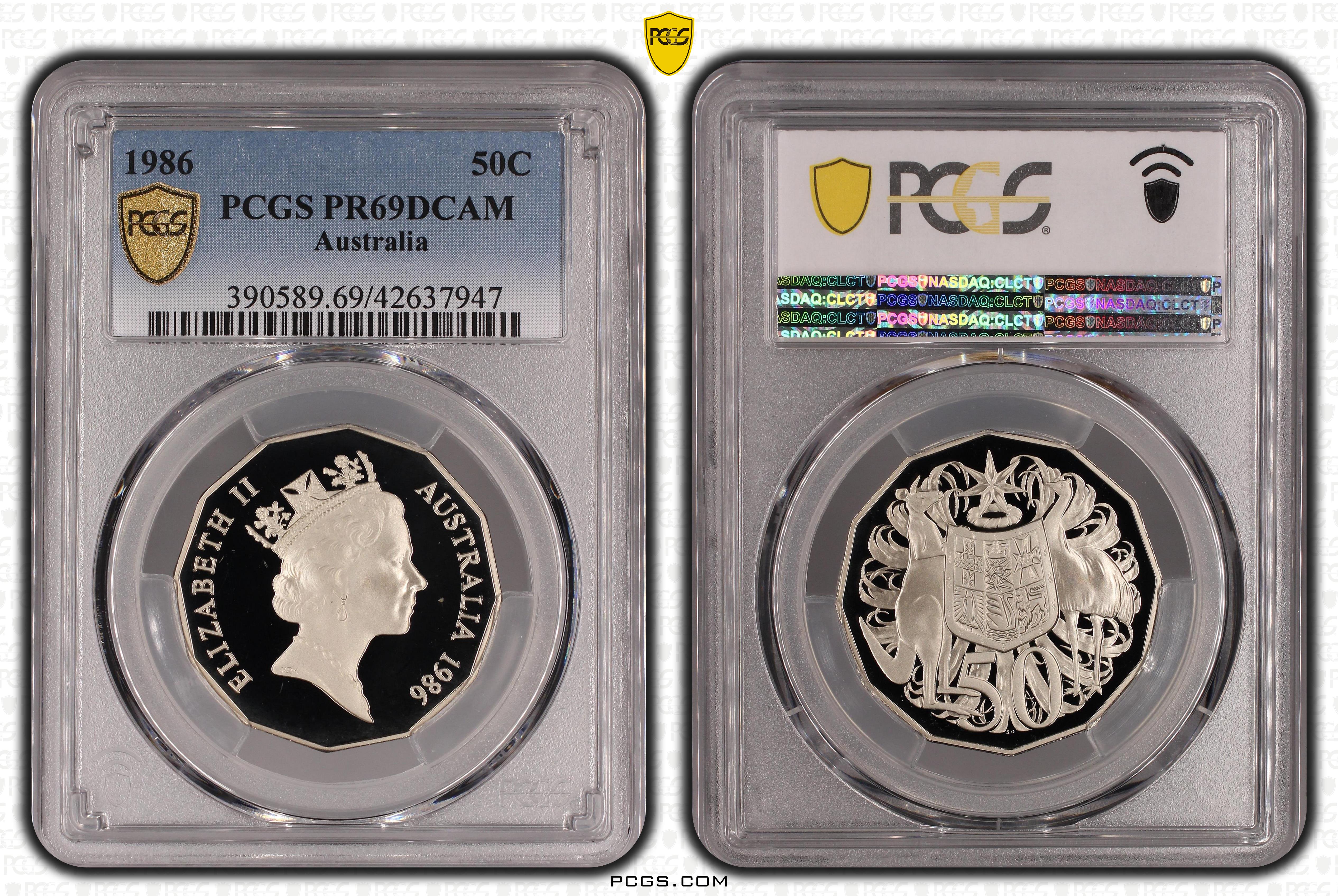 1986 50C, DCAM PR69DCAM Certification #42637947, PCGS #390589