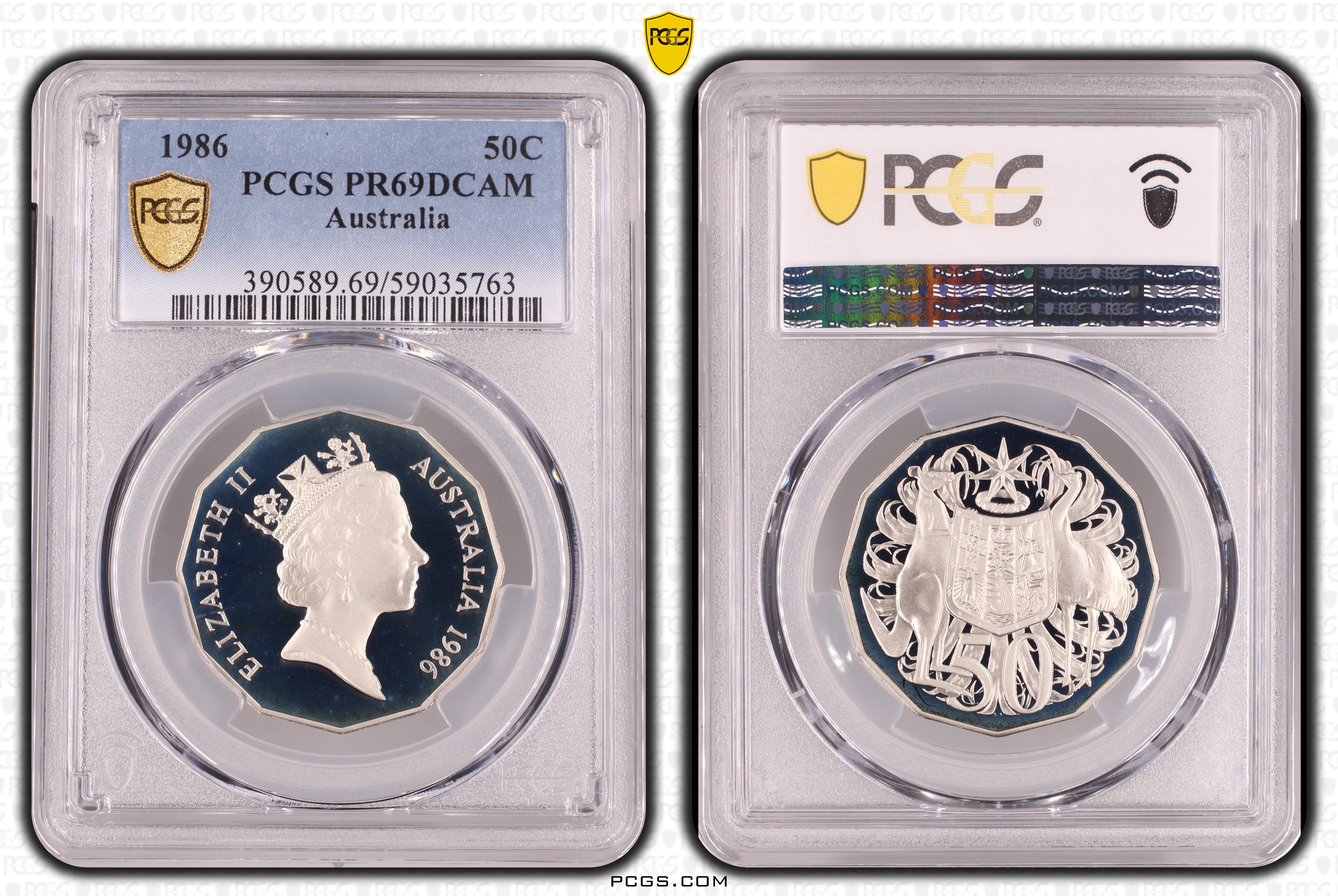1986 50C, DCAM PR69DCAM Certification #59035763, PCGS #390589