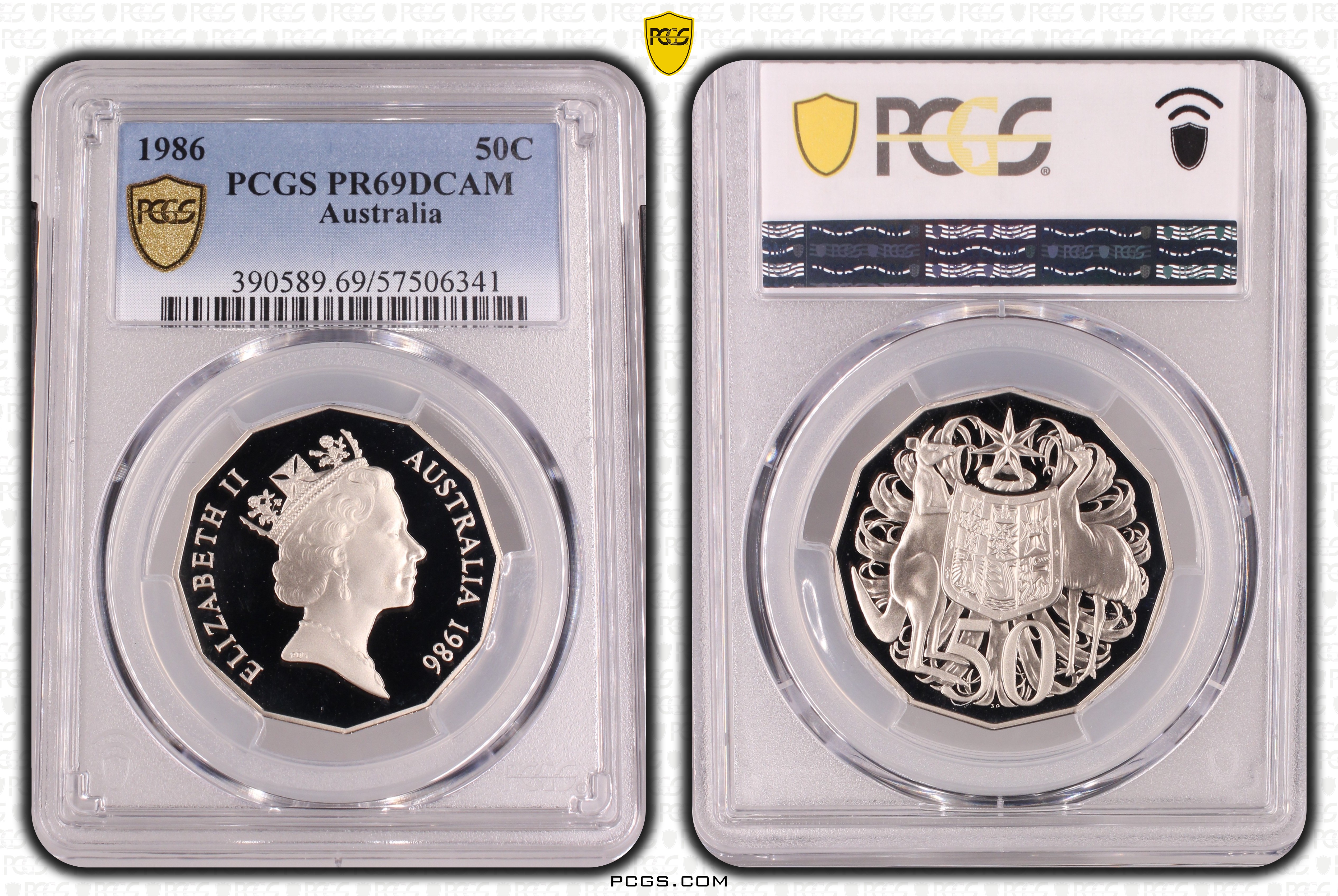 1986 50C, DCAM PR69DCAM Certification #57506341, PCGS #390589