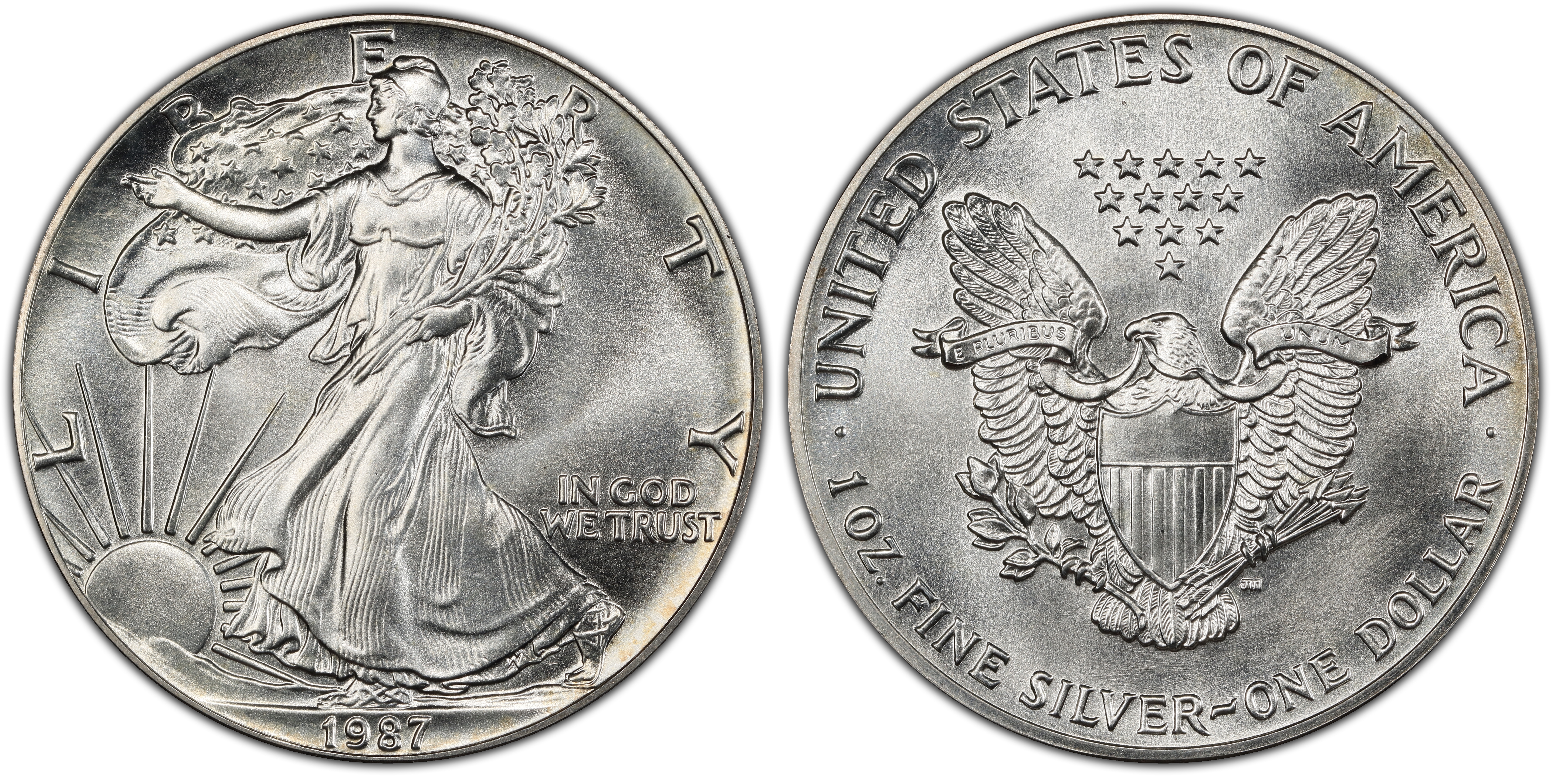 Therefore, the 1987 Uncirculated Silver Eagle is one of the more common dates in the series. Most examples grade from MS66 to MS68. Nicer examples grade MS67 but very have been graded MS70.