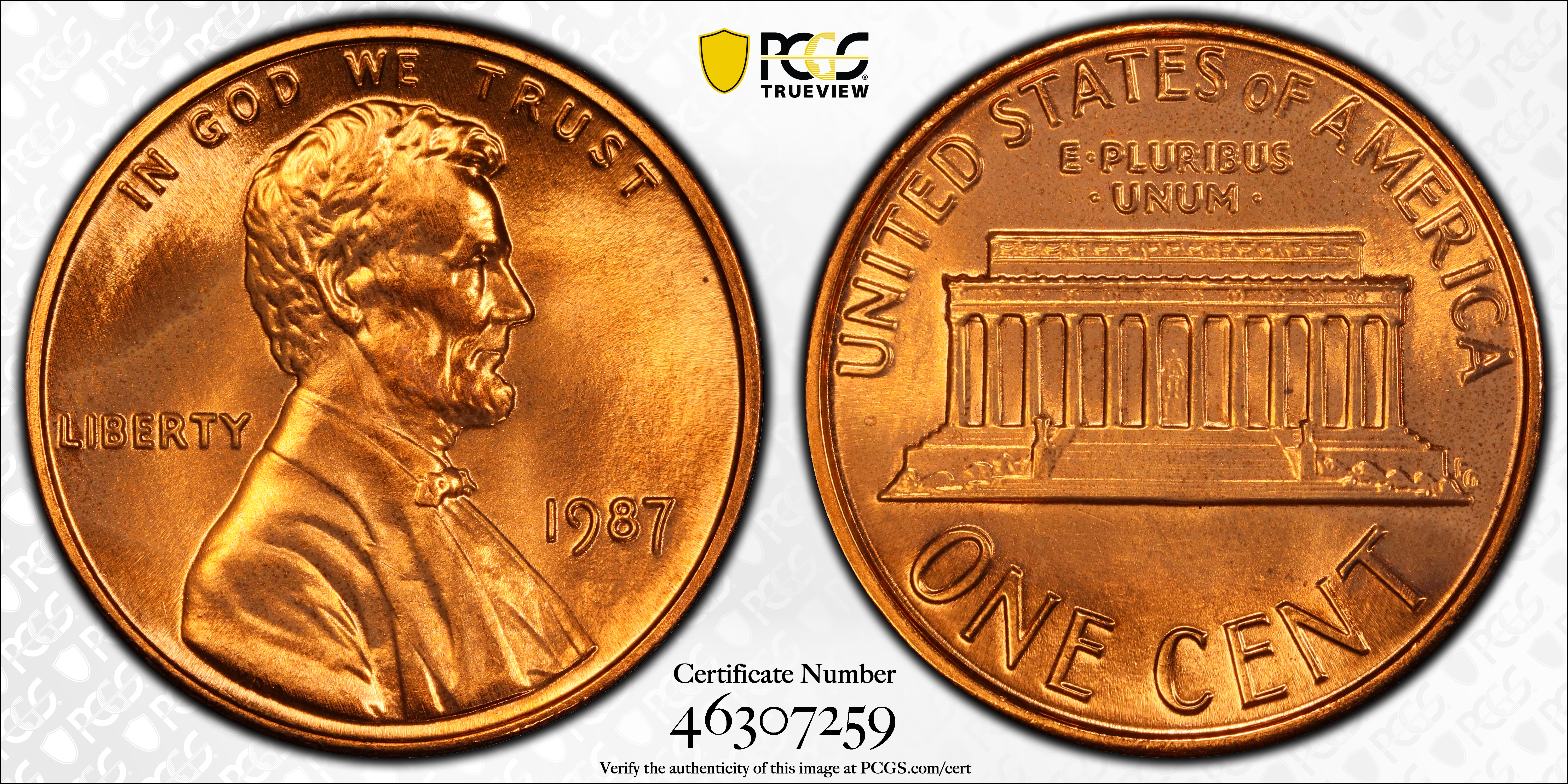 1987 1C, RD MS66RD Certification #46307259, PCGS #3065