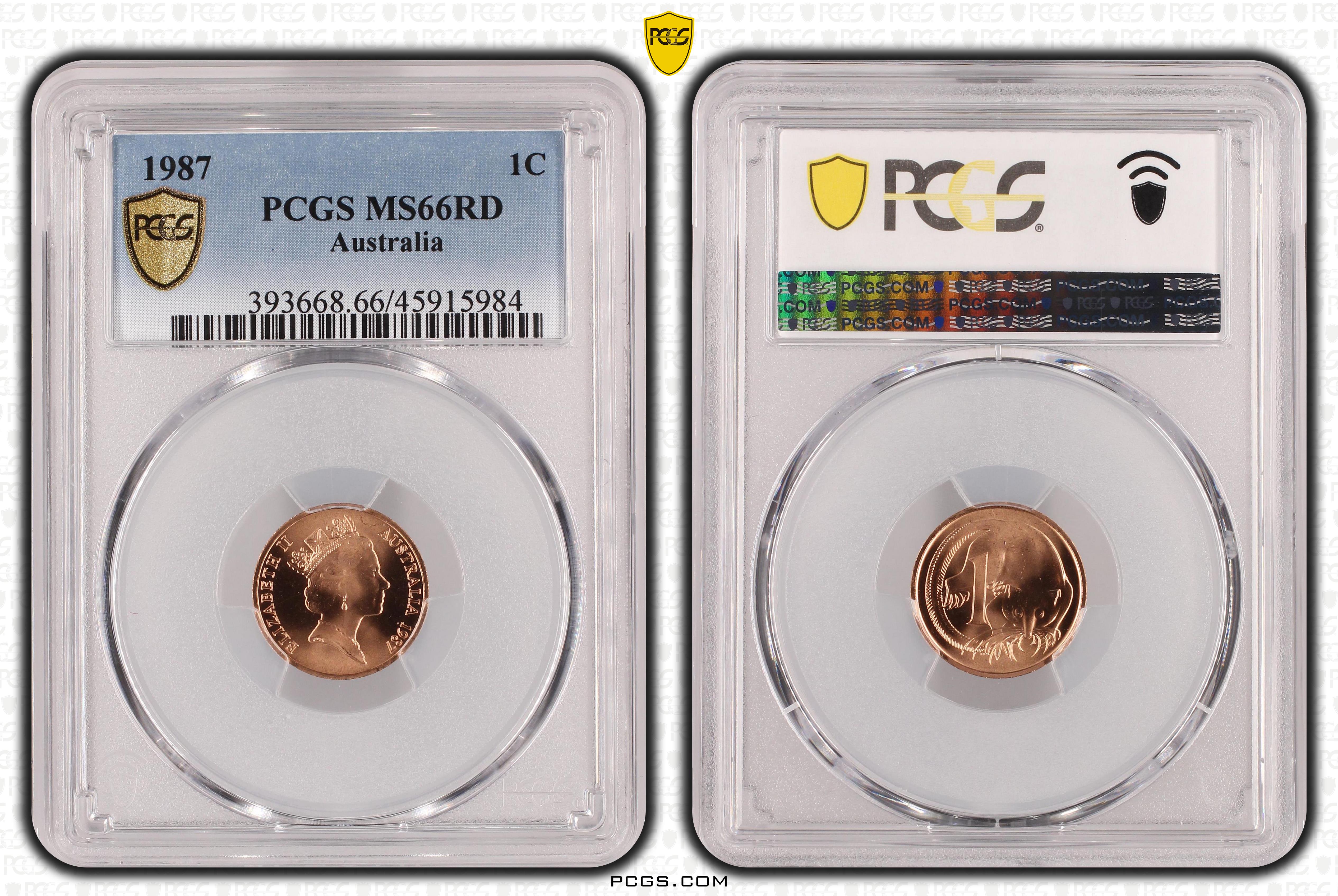 1987 1C, RD MS66RD Certification #45915984, PCGS #393668