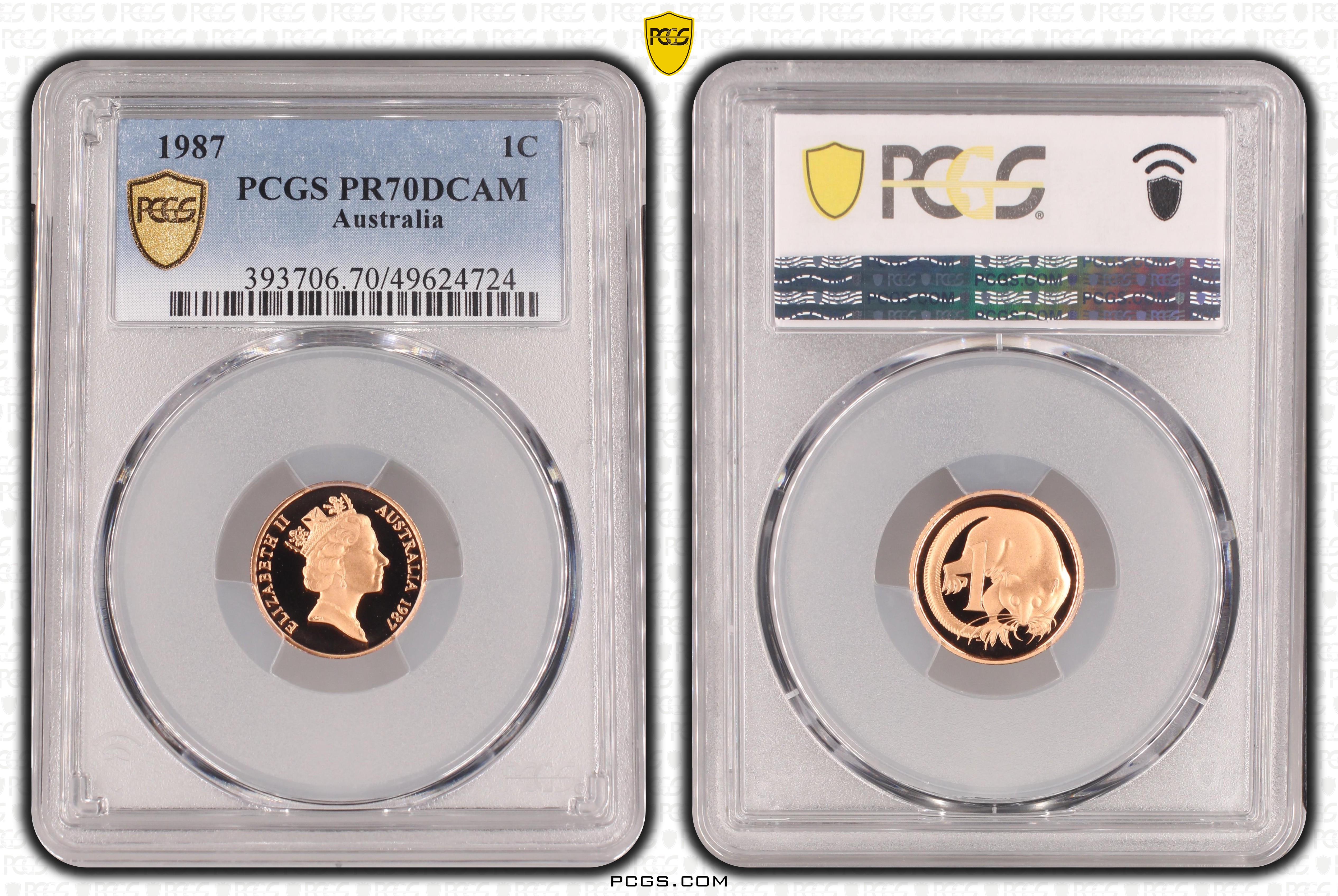 1987 1C, DCAM PR70DCAM Certification #49624724, PCGS #393706