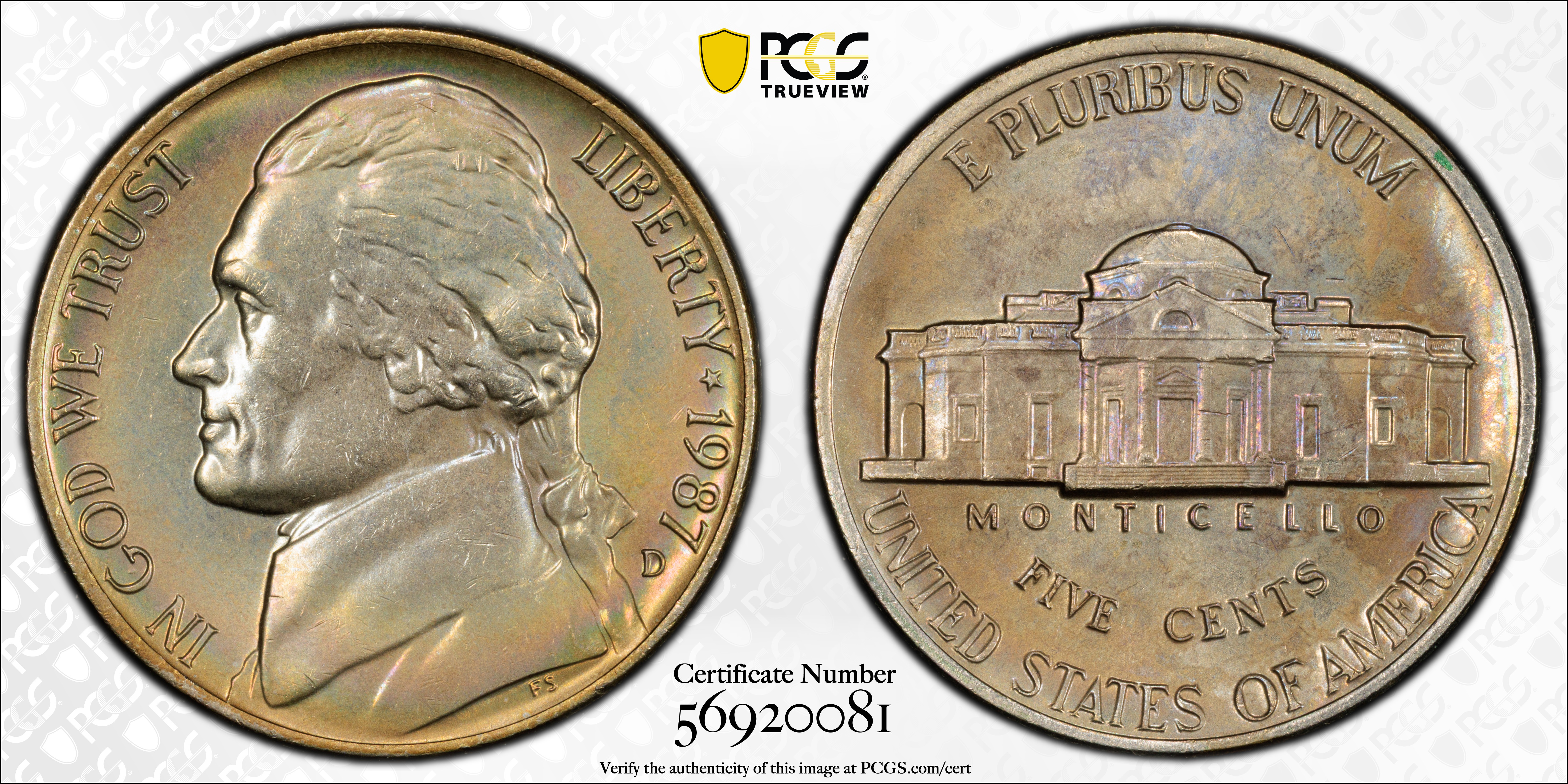 1987-D 5C, FS MS65FS Certification #56920081, PCGS #84119