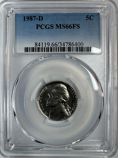 1987-D 5C, FS MS66FS Certification #34786400, PCGS #84119