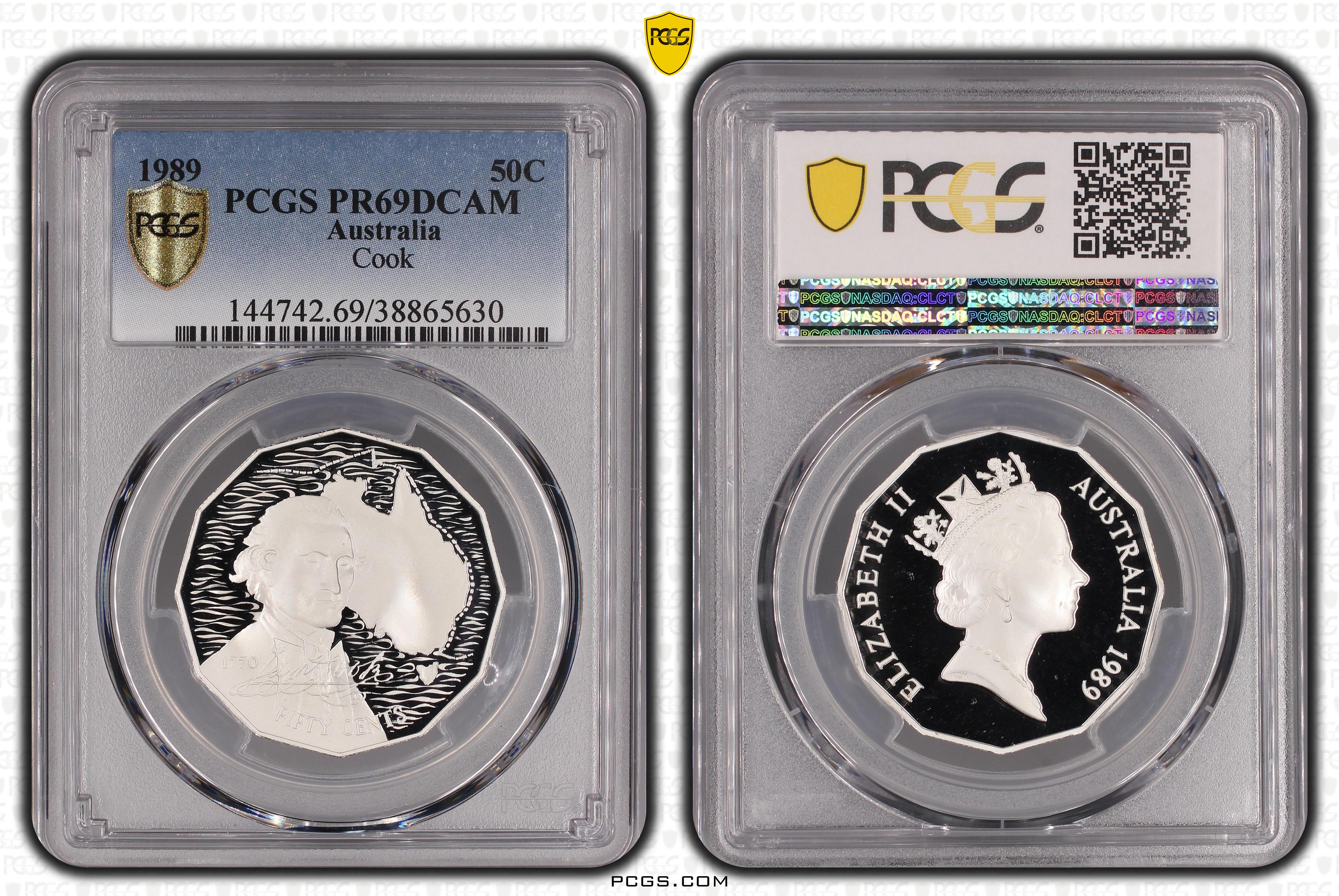 1989 50C Cook Ag, DCAM PR69DCAM Certification #38865630, PCGS #144742