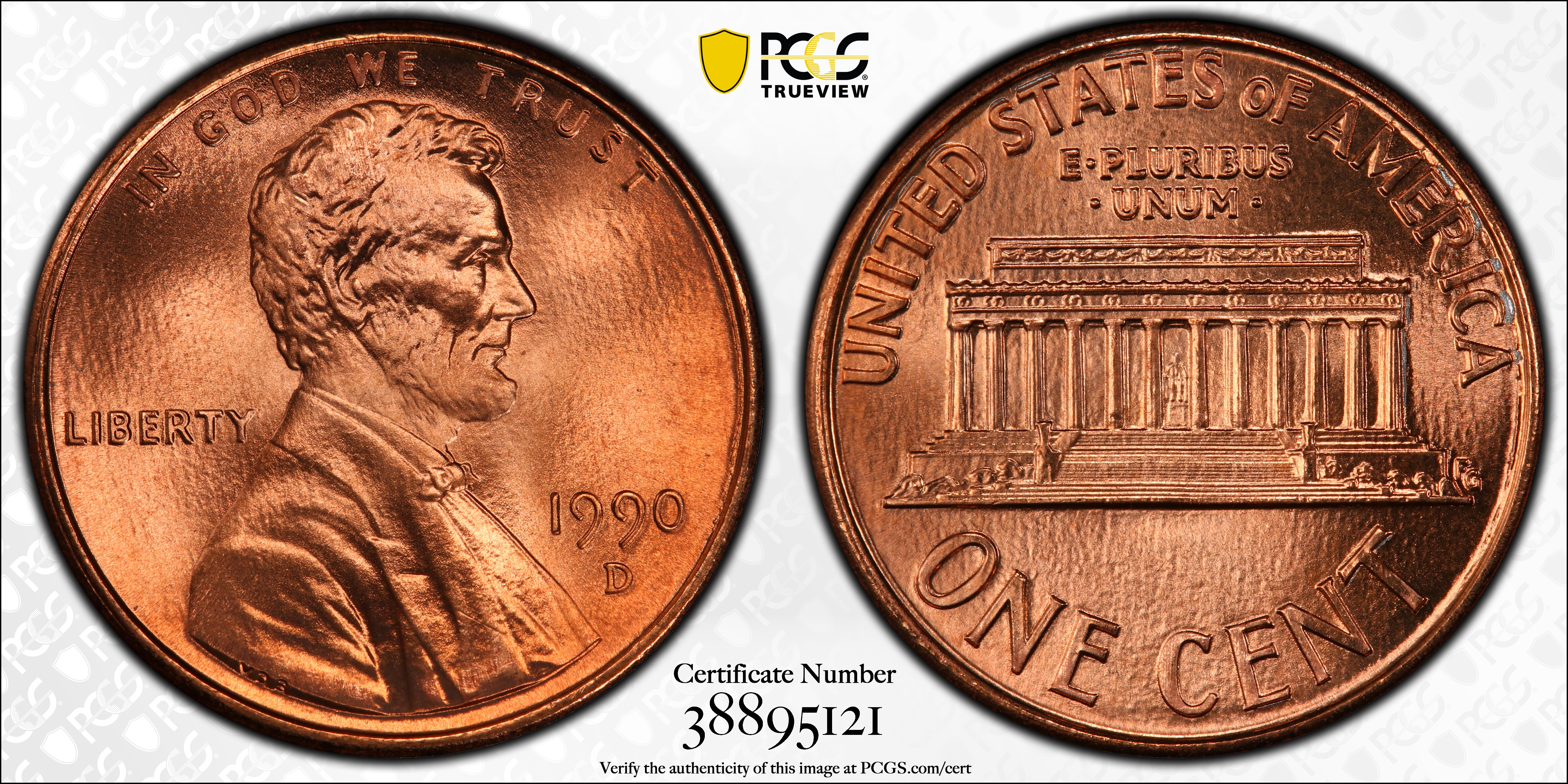 1990-D 1C, RD MS67RD Certification #38895121, PCGS #3086