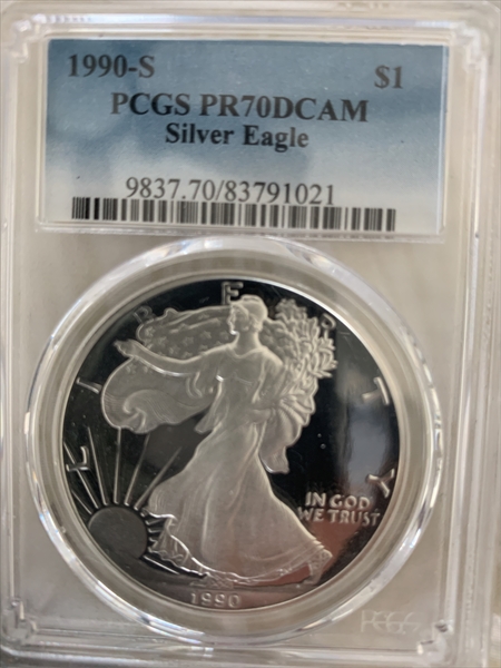 1990-S $1 Silver Eagle, DCAM PR70DCAM Certification #83791021, PCGS #9837