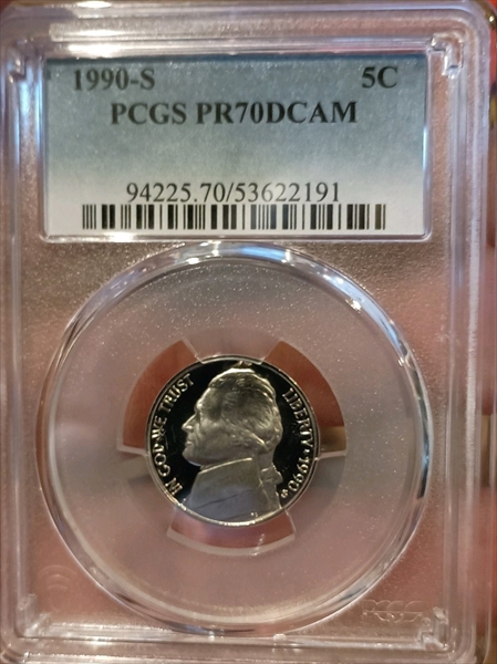 1990-S 5C, DCAM PR70DCAM Certification #53622191, PCGS #94225