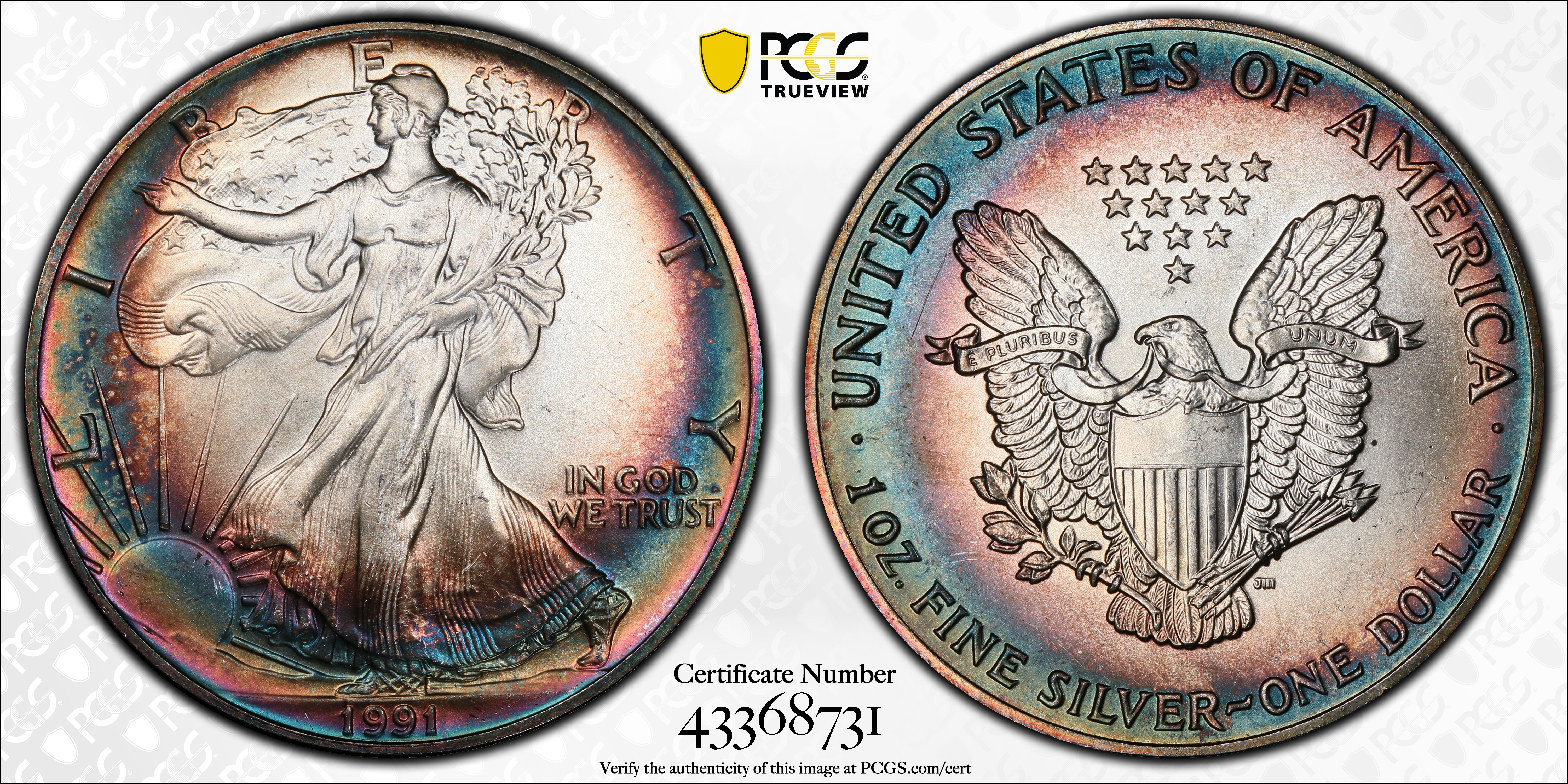 1991 $1 Silver Eagle MS66 Certification #43368731, PCGS #9846