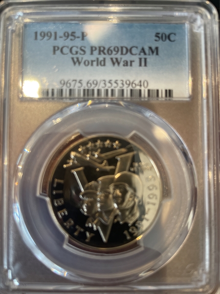 1991-95-P 50C World War II, DCAM PR69DCAM Certification #35539640, PCGS #9675