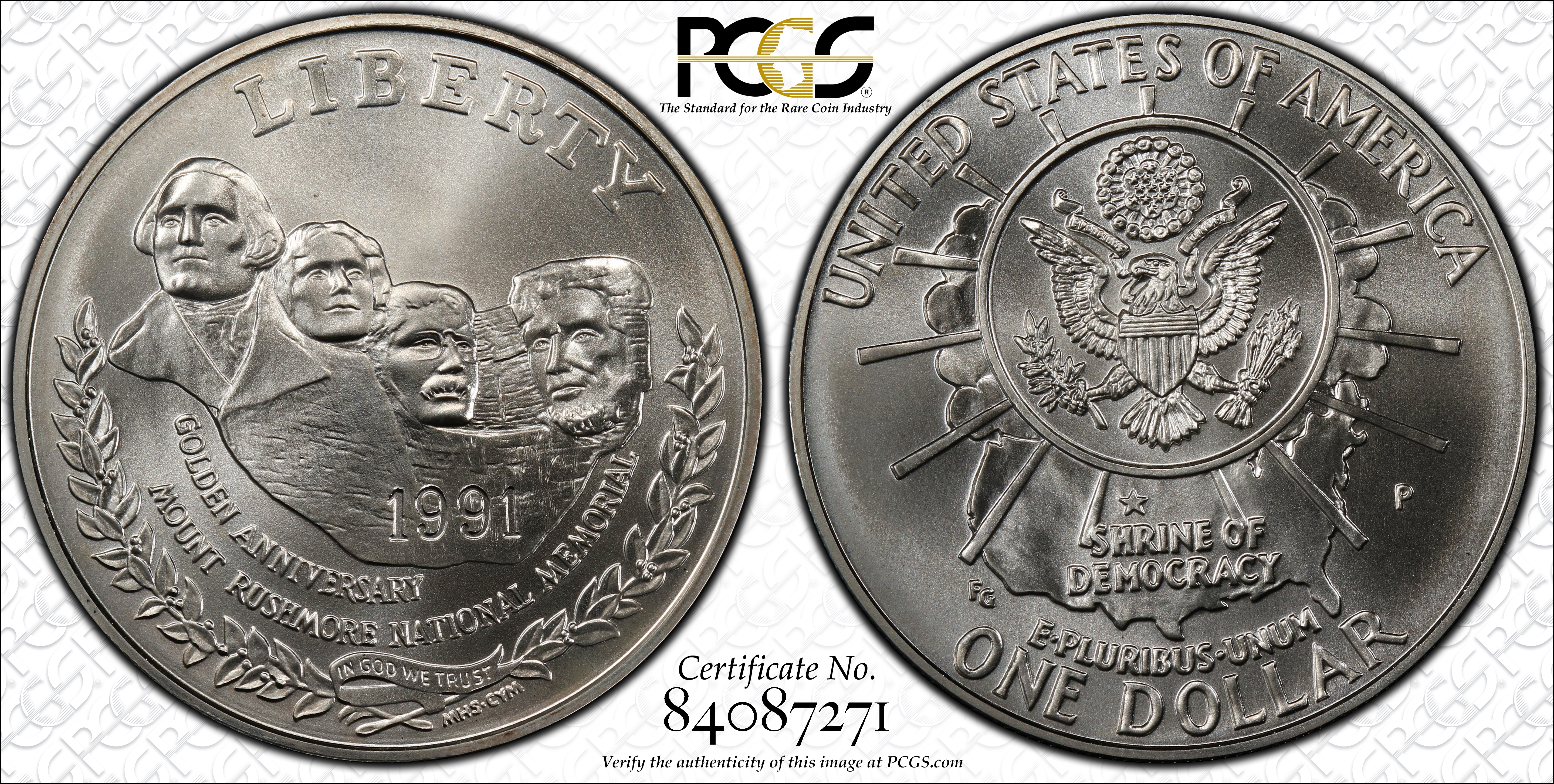 1991-P $1 Mount Rushmore MS69 Certification #84087271, PCGS #9644