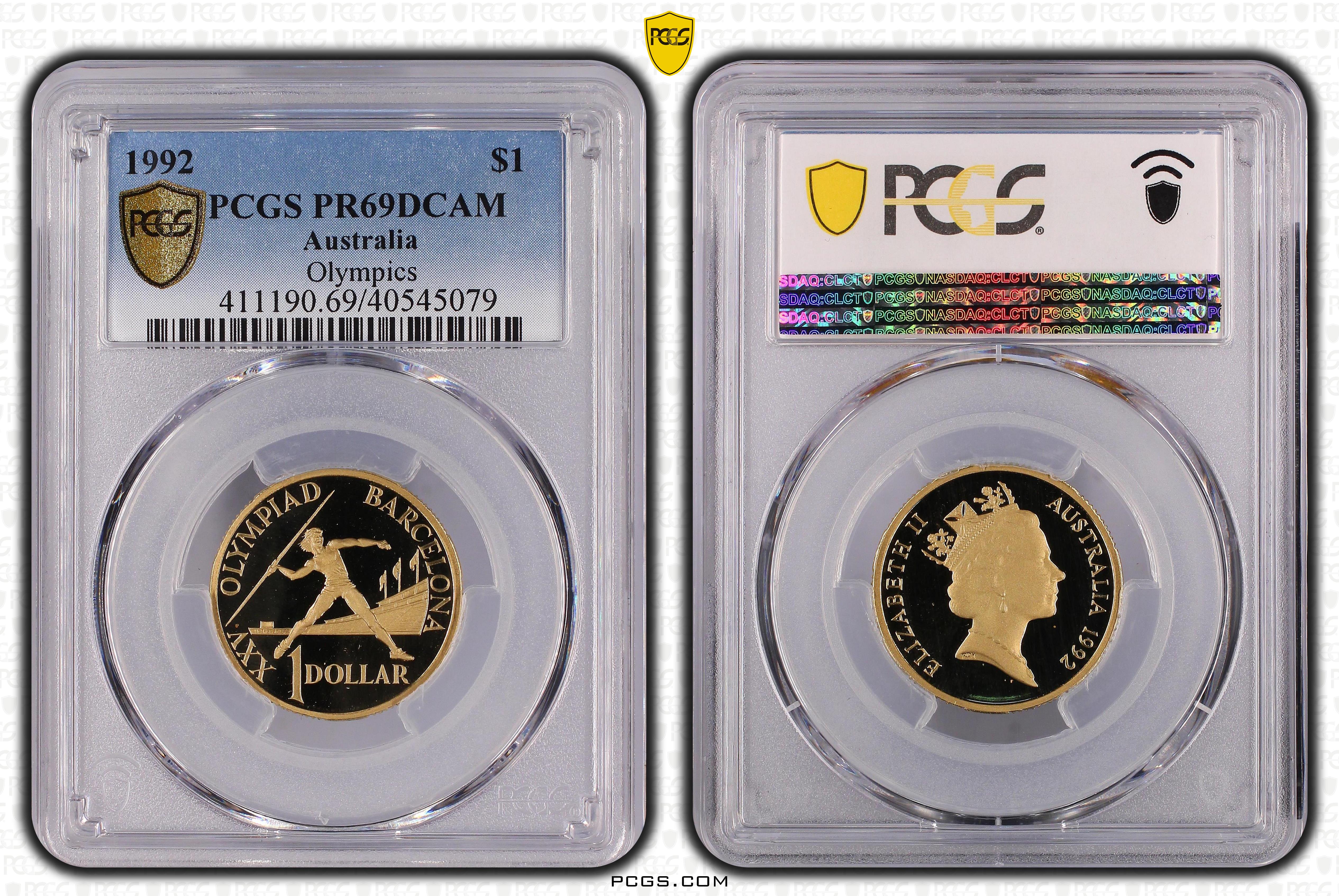 1992 $1 Olympics, DCAM PR69DCAM Certification #40545079, PCGS #411190