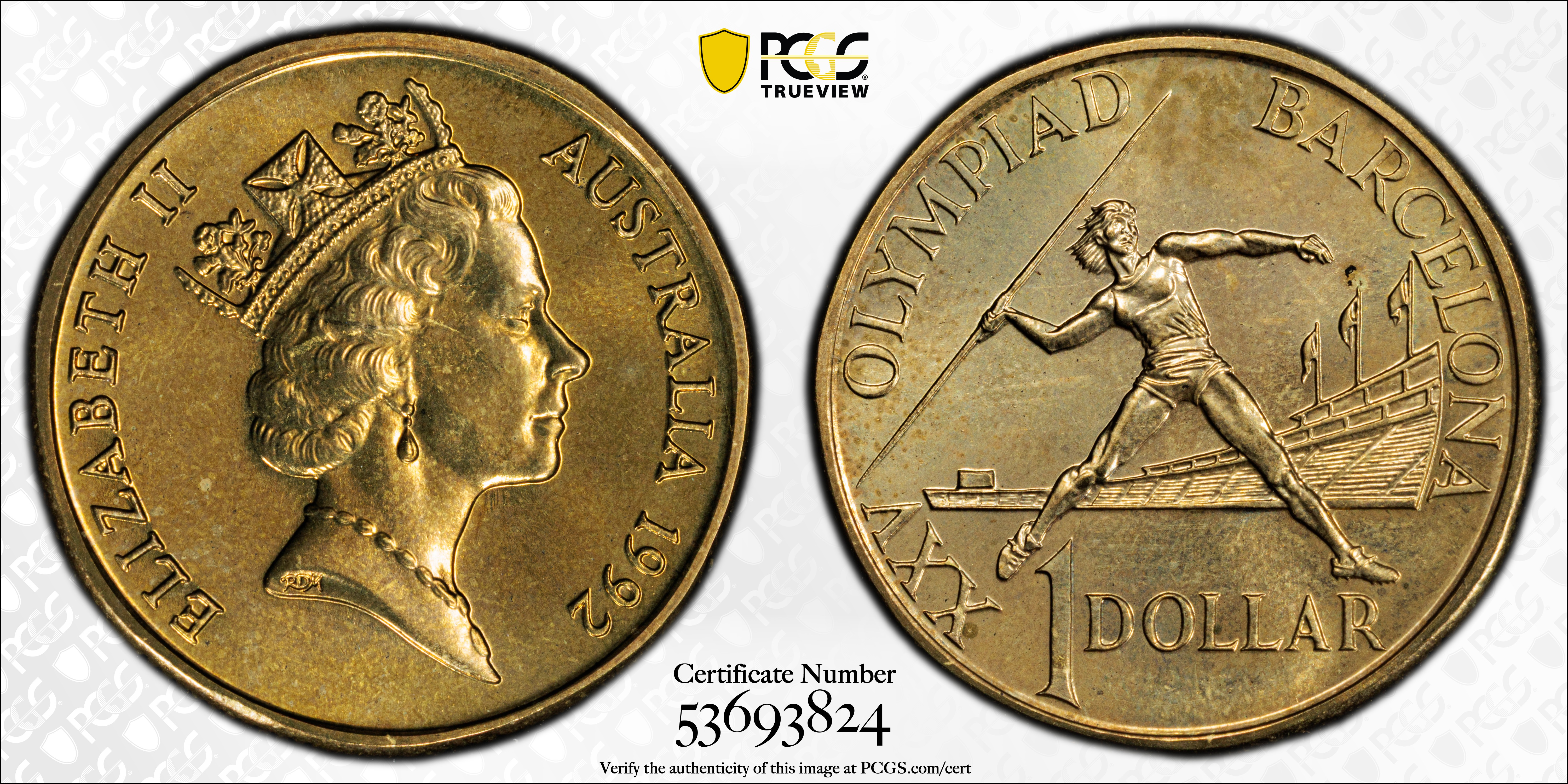 1992 $1 Olympics MS66 Certification #53693824, PCGS #402418
