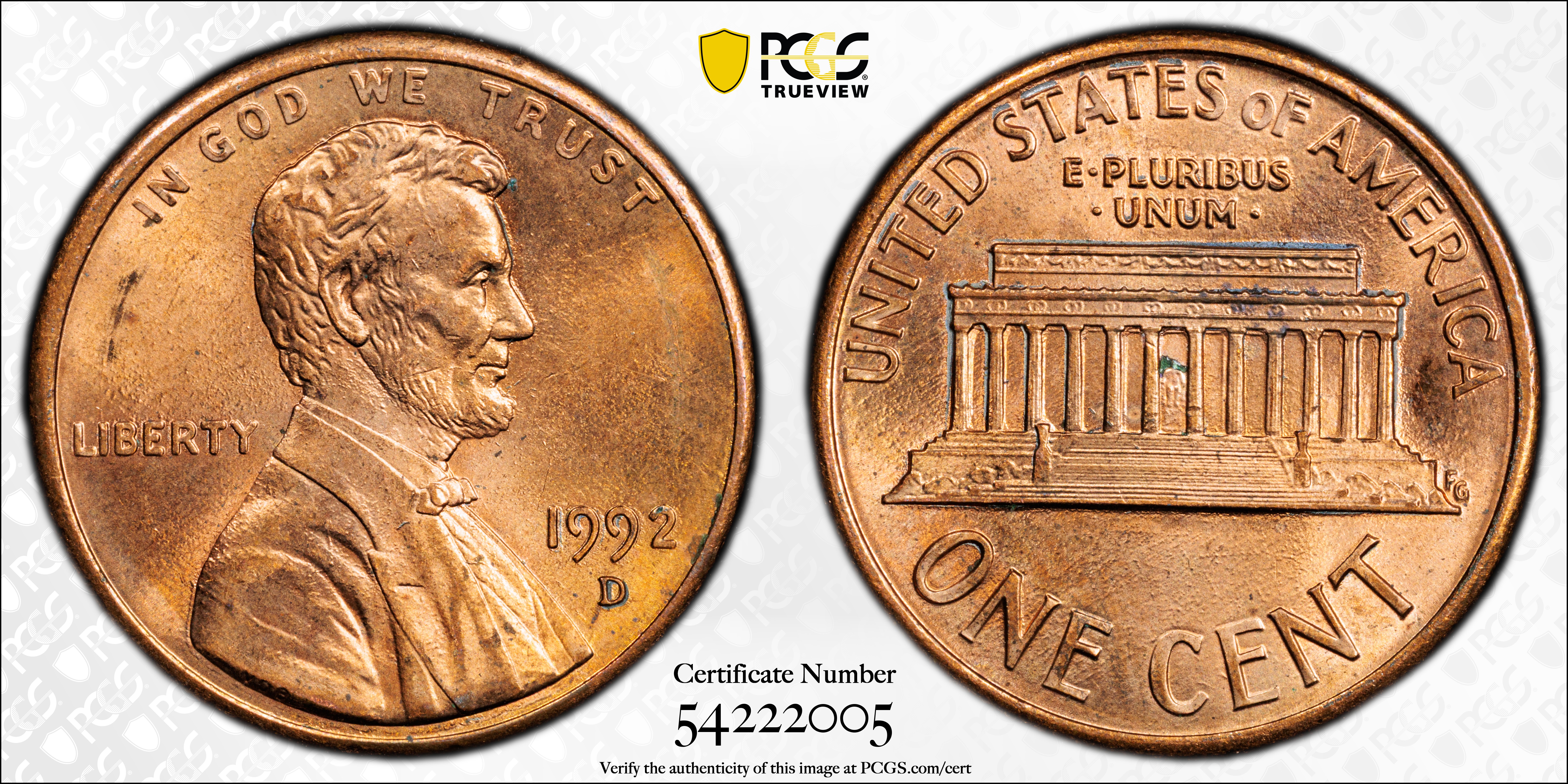 1992-D 1C, BN N1BN Certification #54222005, PCGS #3099