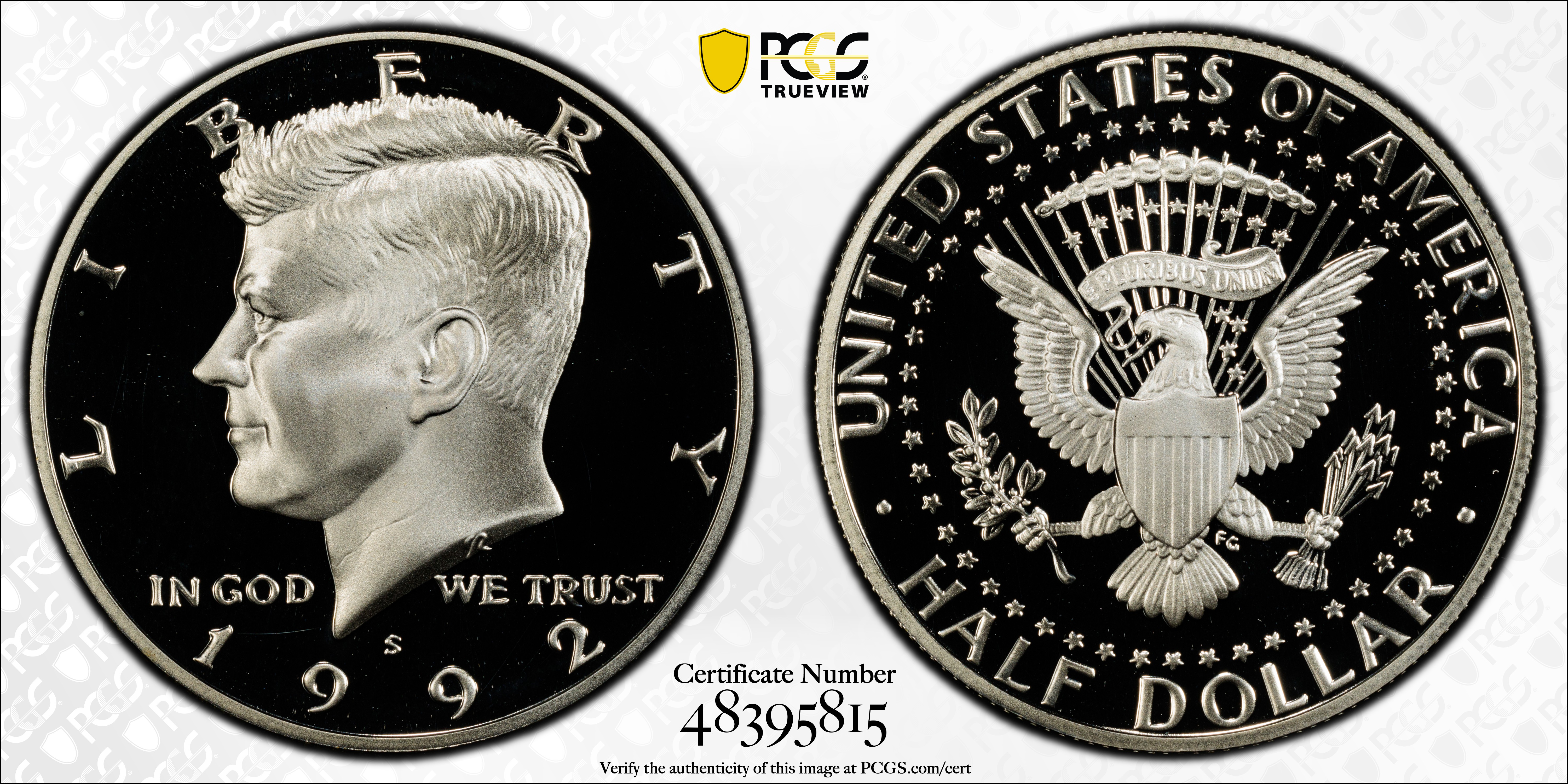 1992-S 50C Silver, DCAM PR70DCAM Certification #48395815, PCGS #96834