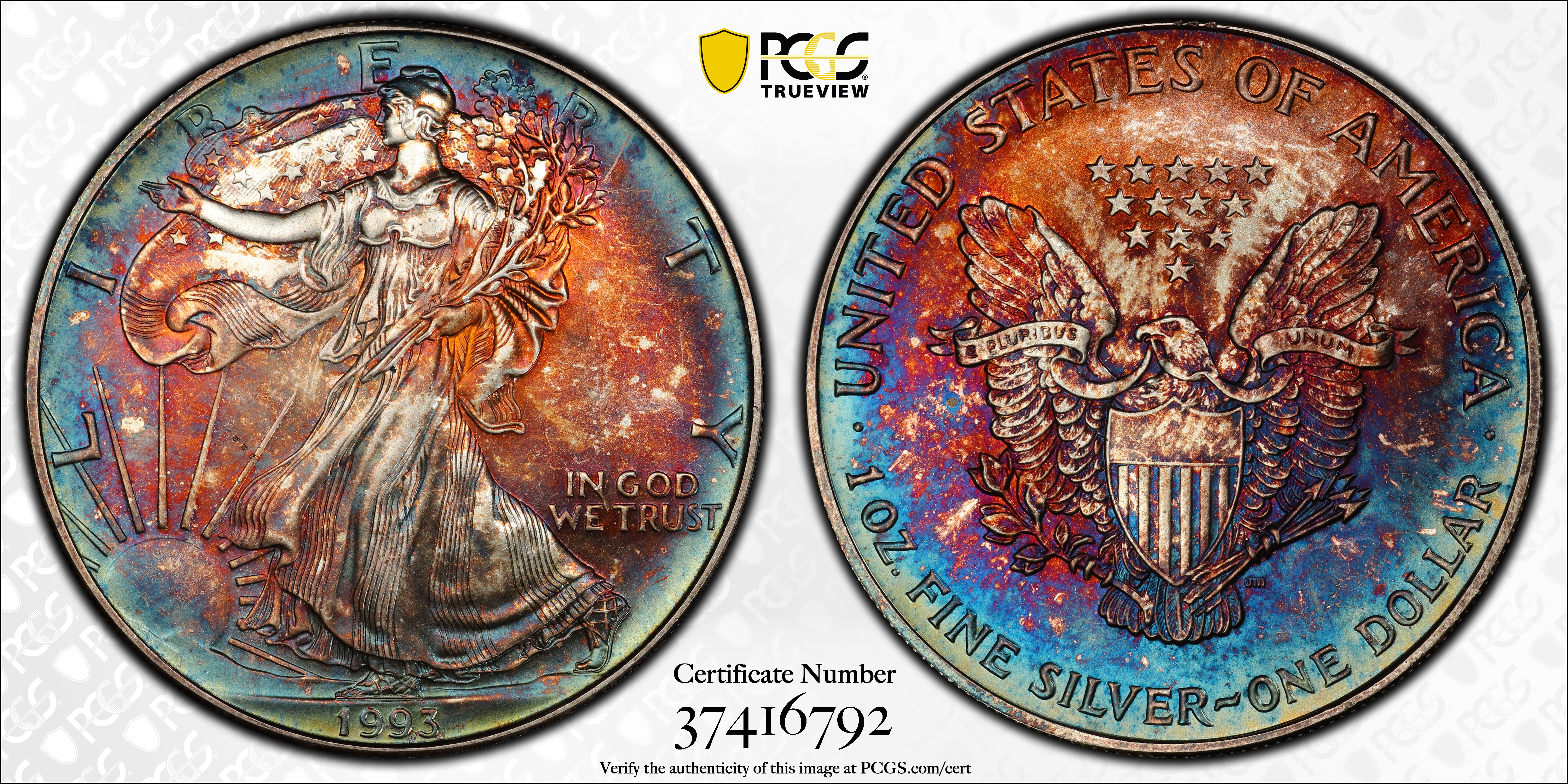 1993 $1 Silver Eagle MS66 Certification #37416792, PCGS #9866