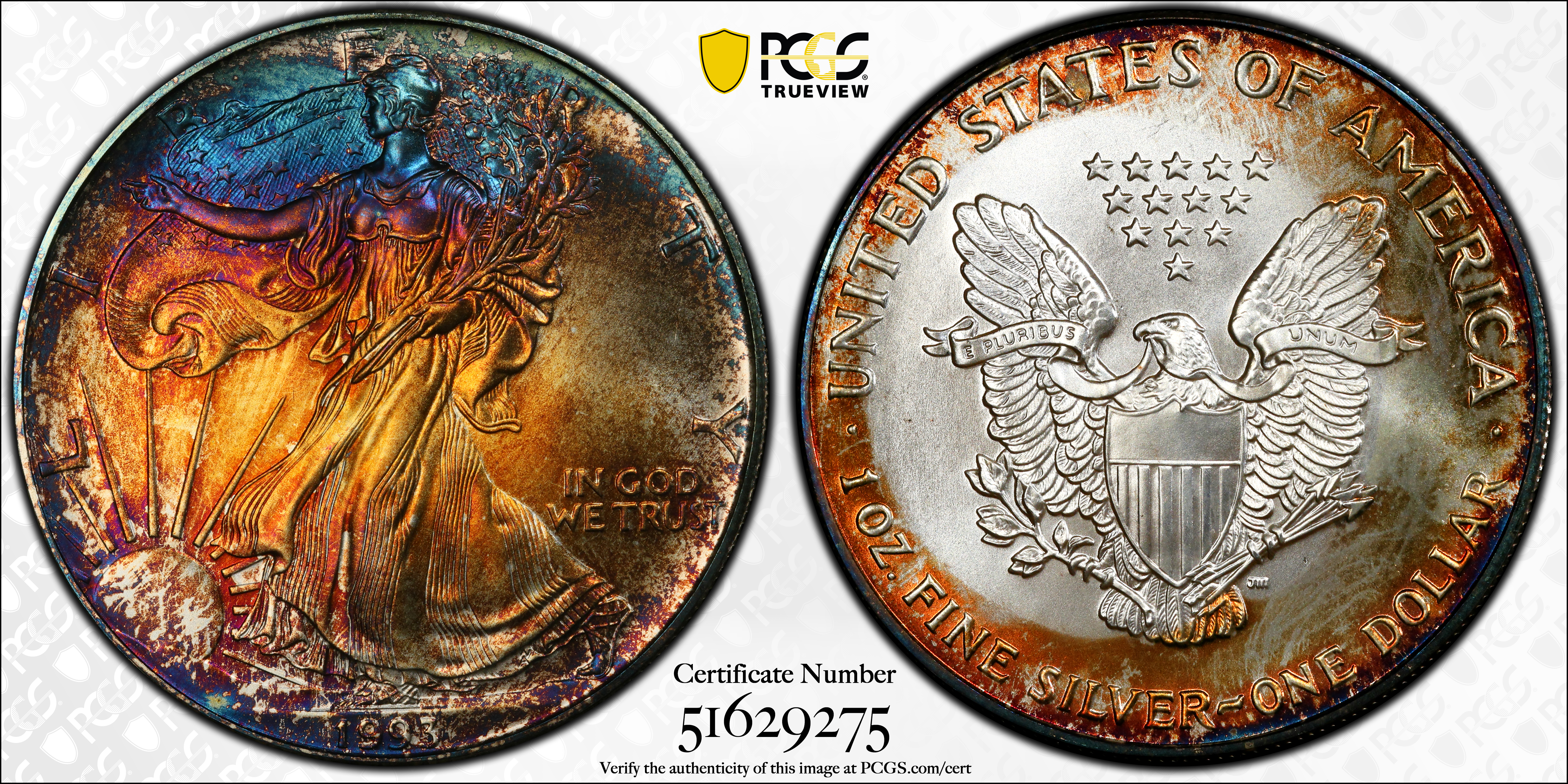 1993 $1 Silver Eagle MS67 Certification #51629275, PCGS #9866