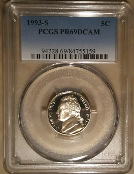 1993-S 5C, DCAM PR69DCAM Certification #84755159, PCGS #94228