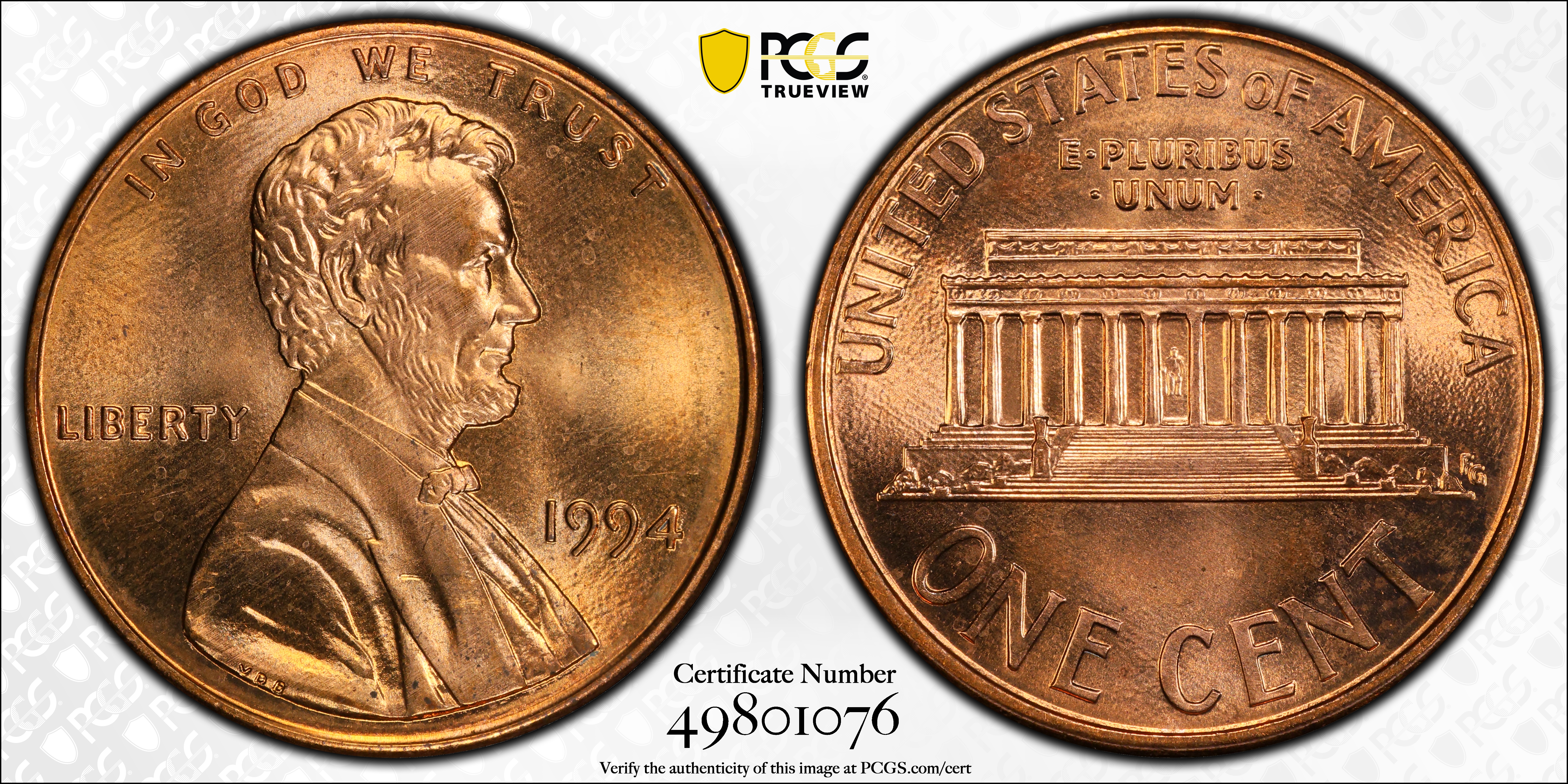 1994 1C, RD MS67RD Certification #49801076, PCGS #3115