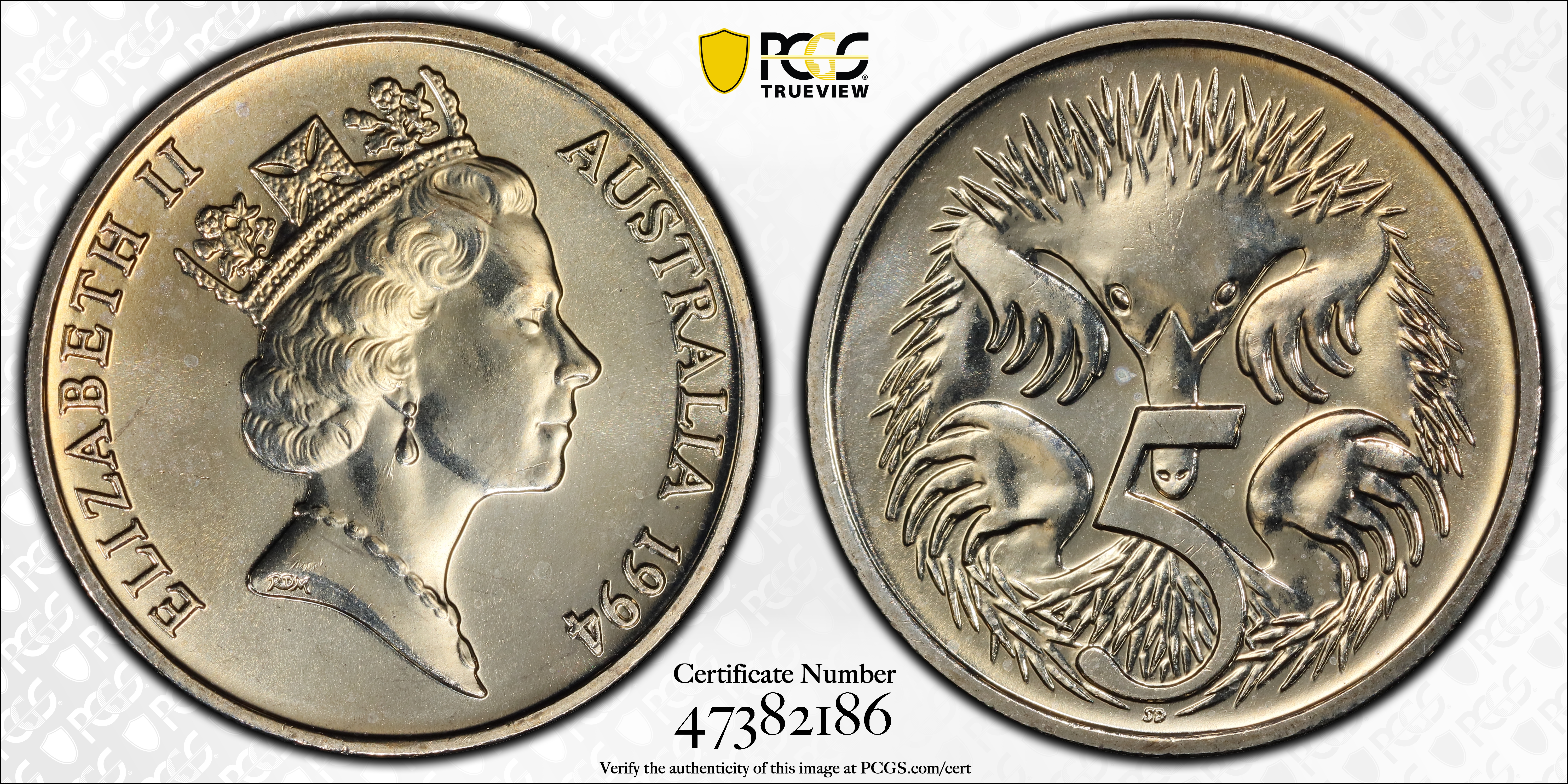 1994 5C Small SD MS66 Certification #47382186, PCGS #706363