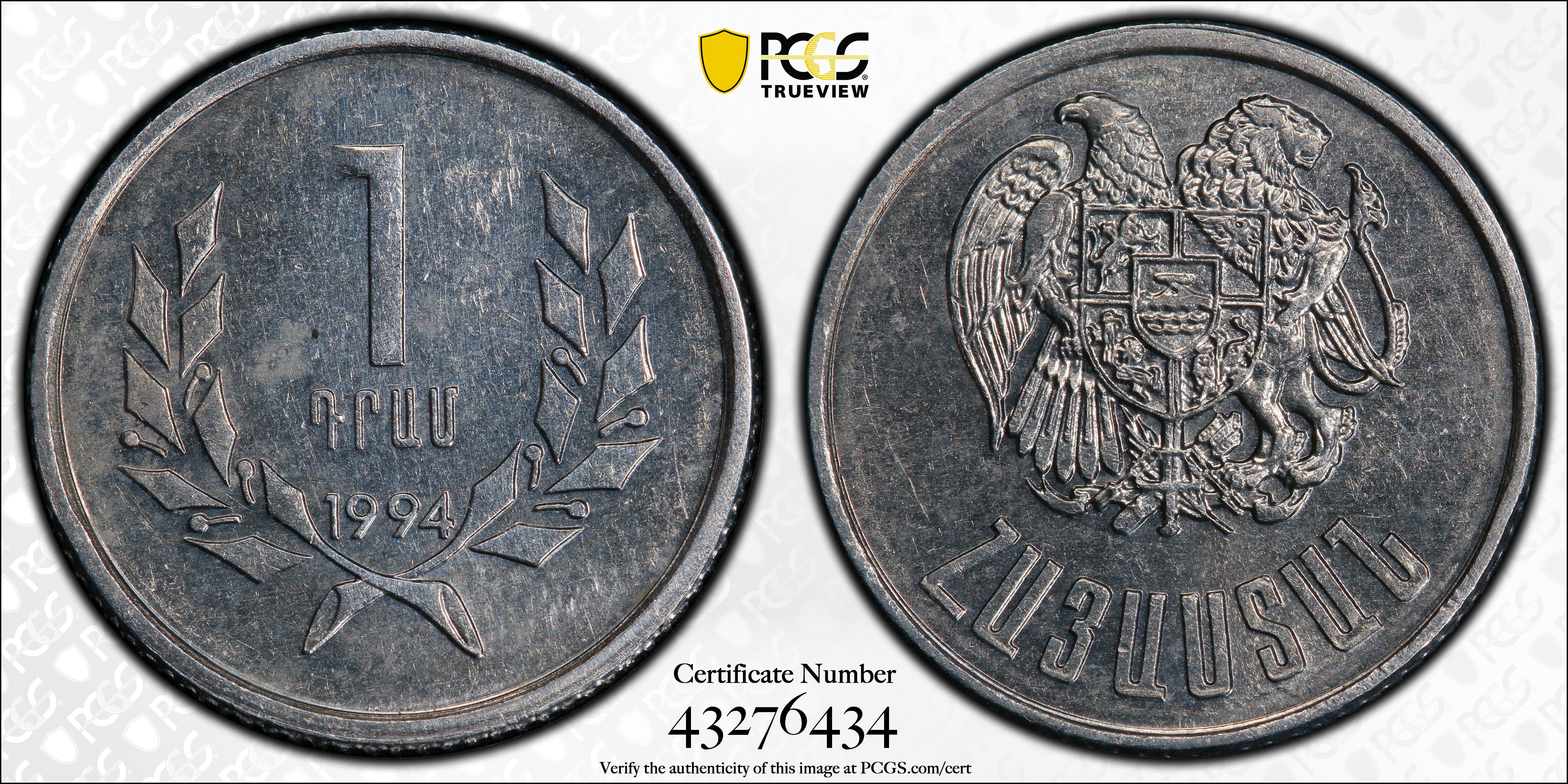 1994 Dram MS61 Certification #43276434, PCGS #433421