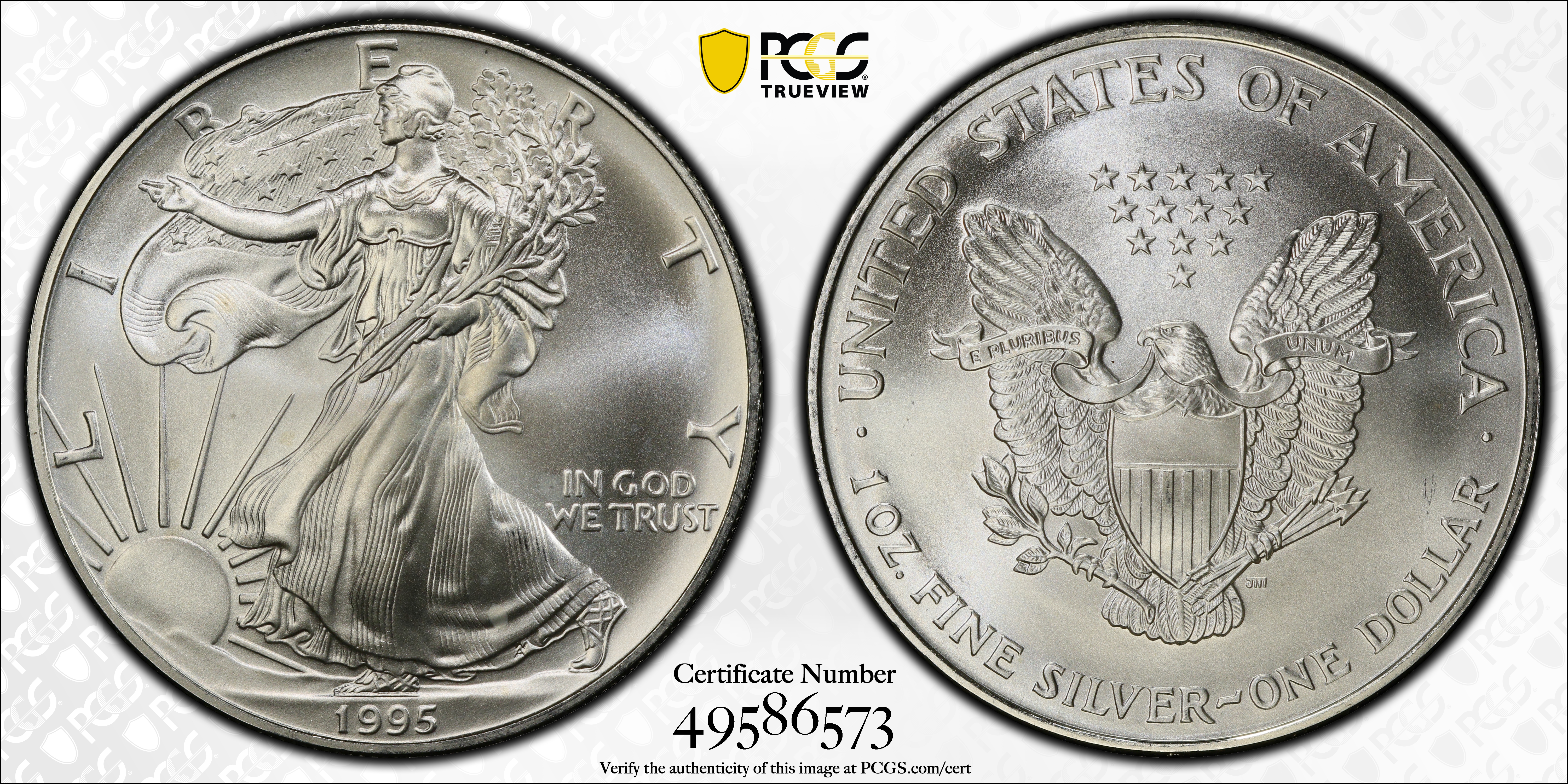 1995 $1 Silver Eagle MS68 Certification #49586573, PCGS #9886