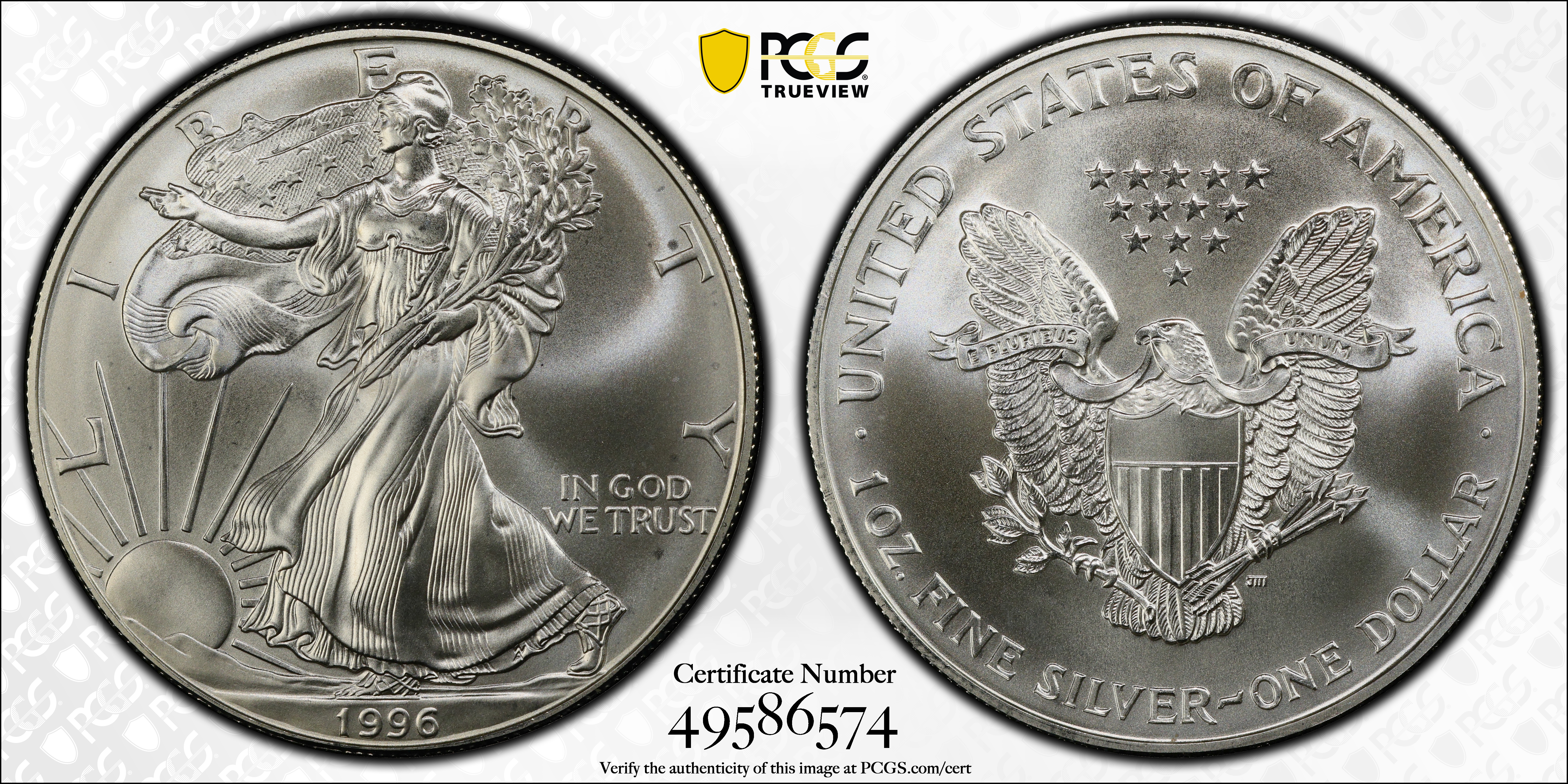1996 $1 Silver Eagle MS69 Certification #49586574, PCGS #9900