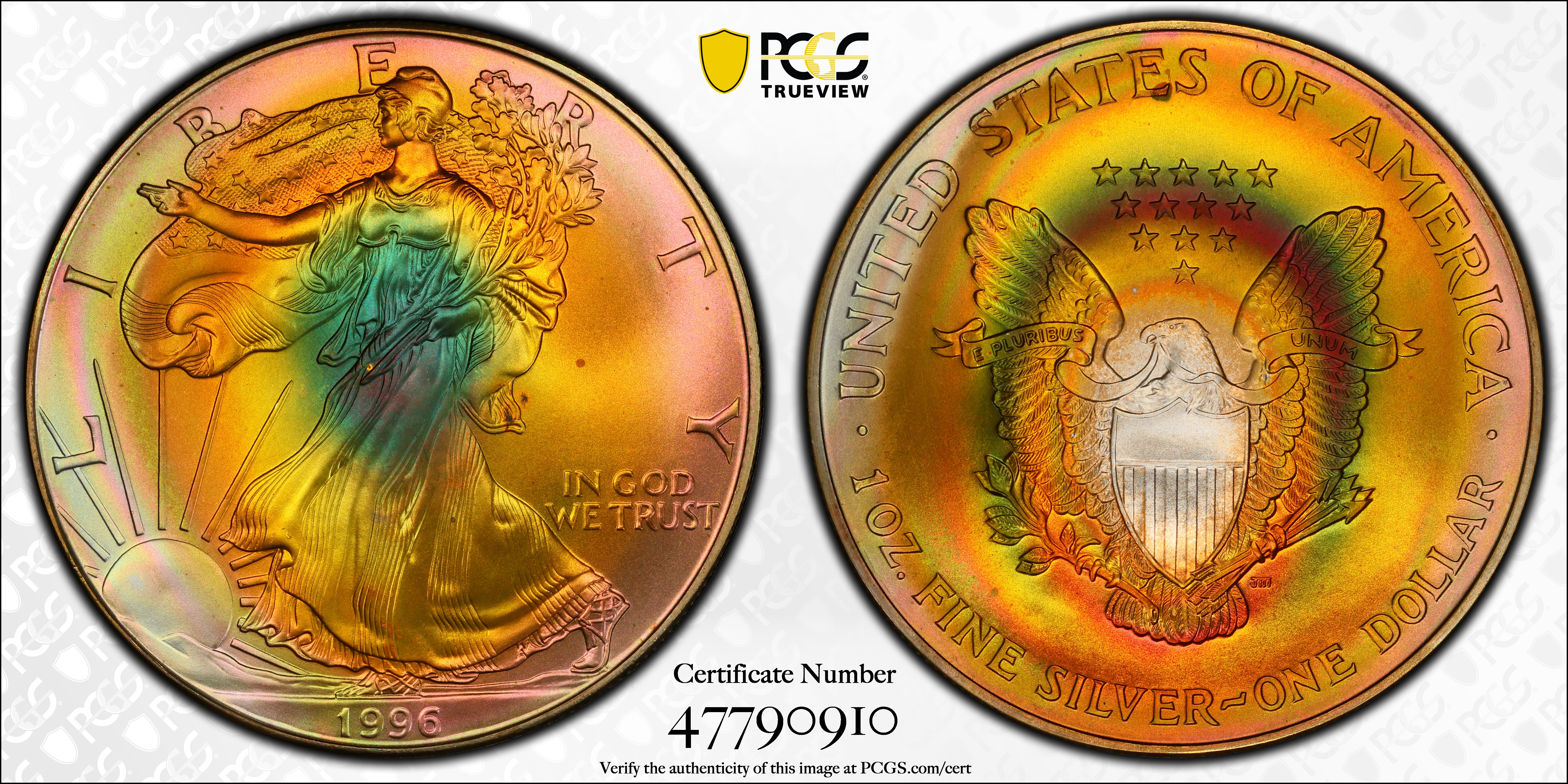 1996 $1 Silver Eagle MS68 Certification #47790910, PCGS #9900