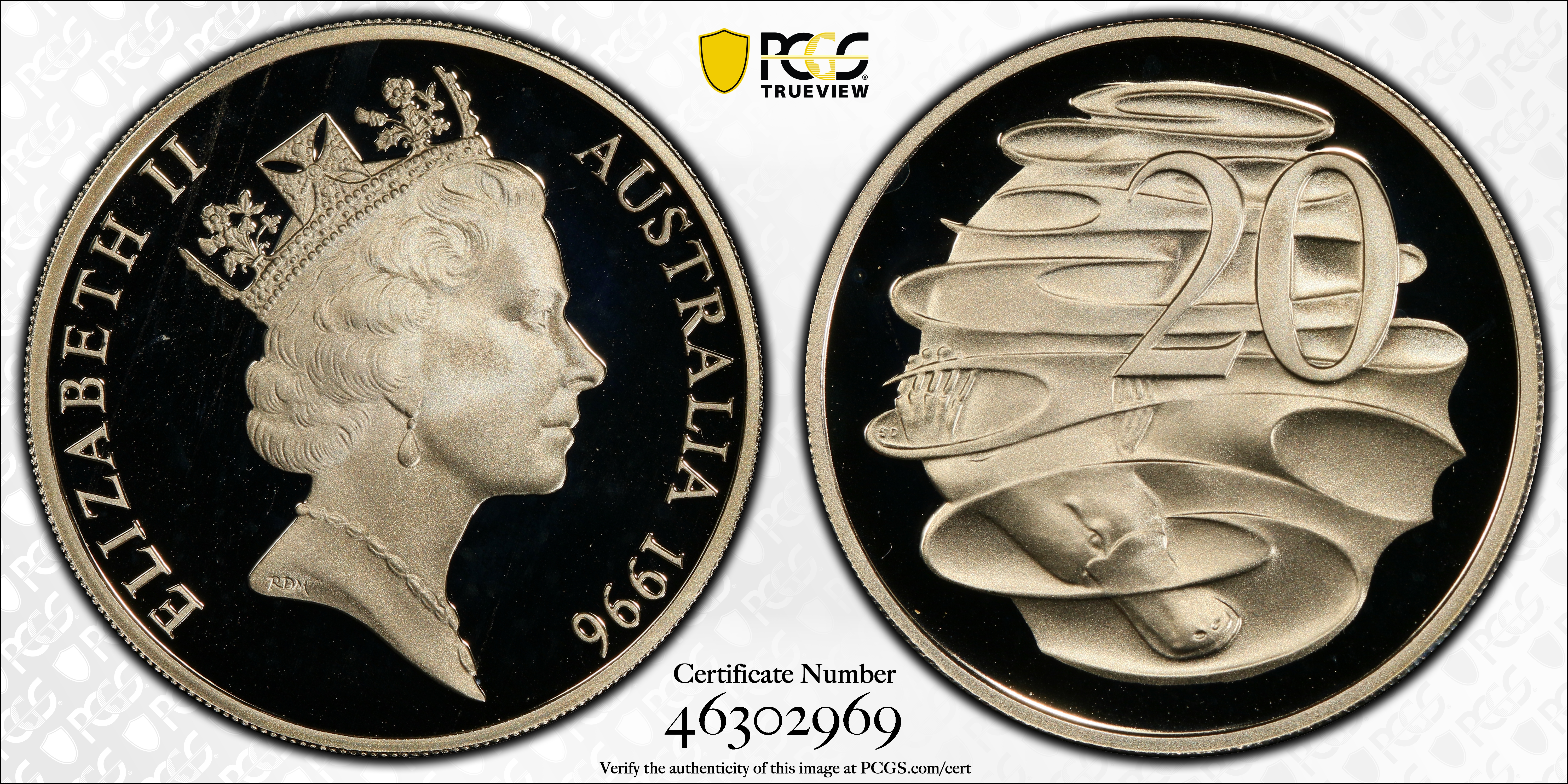 1996 20C, DCAM PR69DCAM Certification #46302969, PCGS #393975
