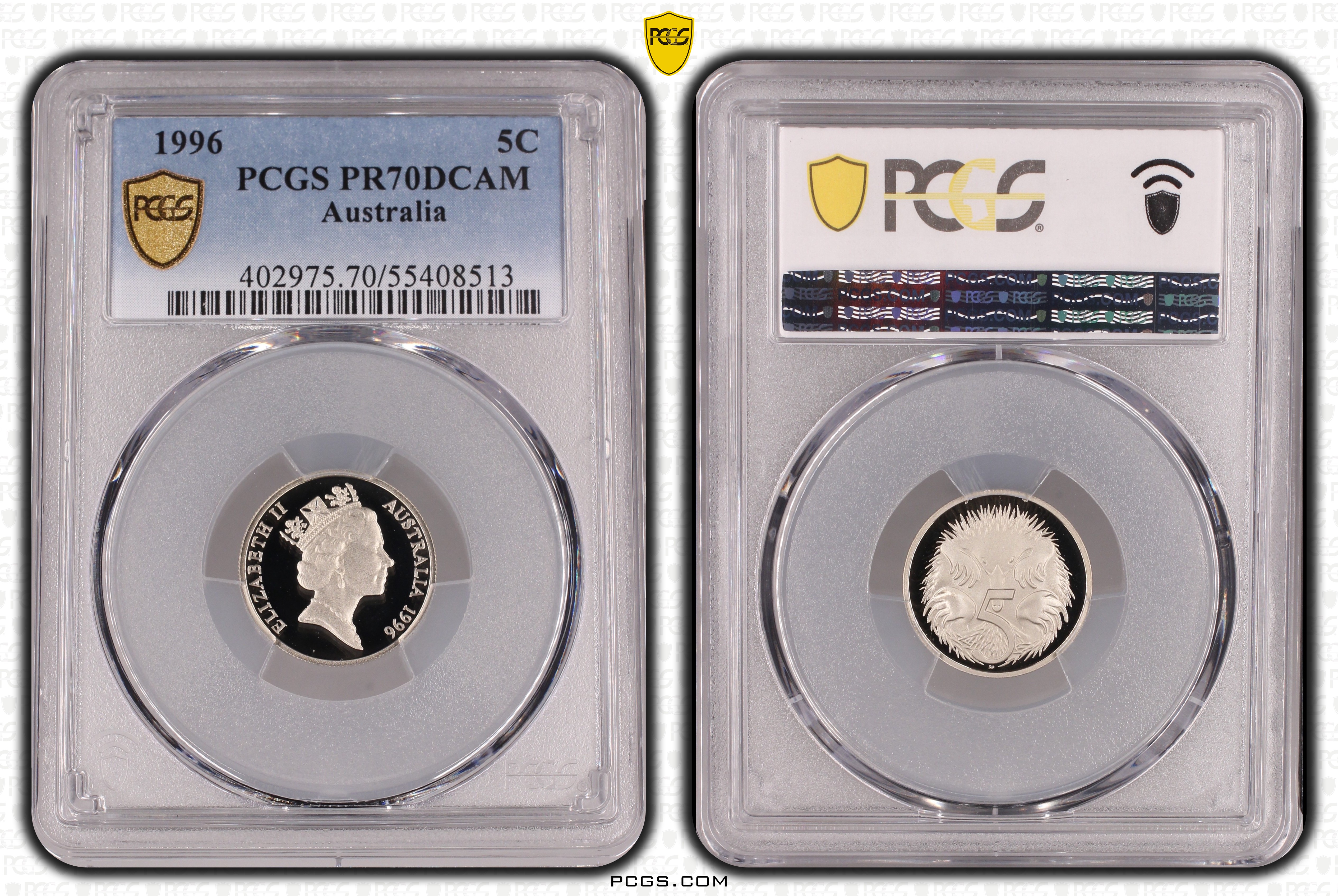 1996 5C, DCAM PR70DCAM Certification #55408513, PCGS #402975