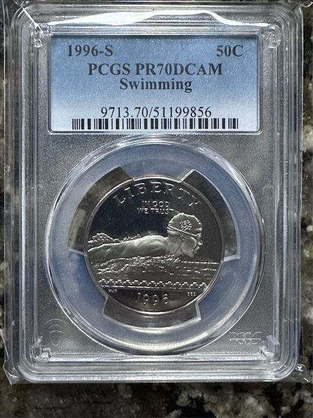 1996-S 50C Swimming, DCAM PR70DCAM Certification #51199856, PCGS #9713