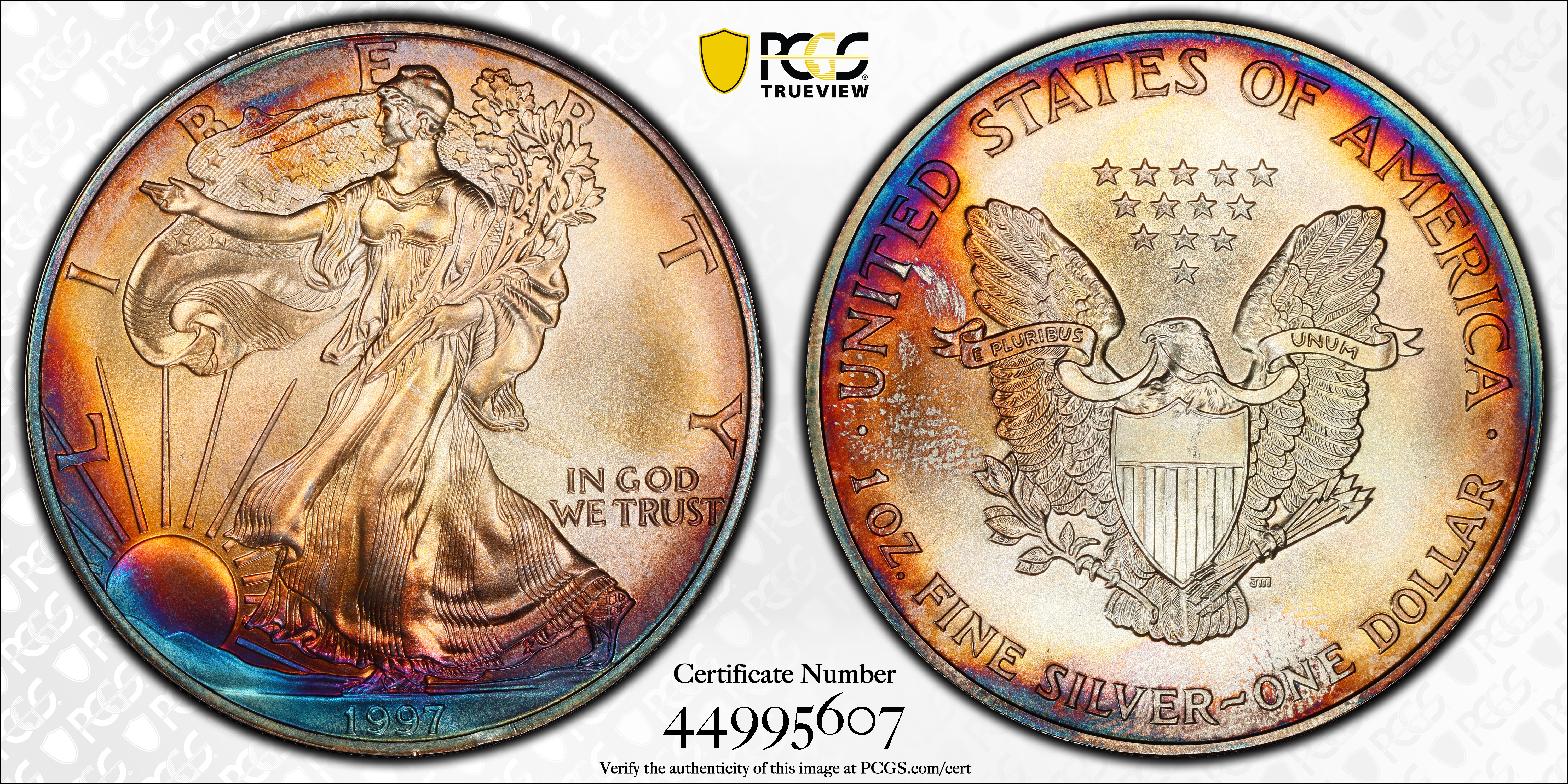 1997 $1 Silver Eagle MS68 Certification #44995607, PCGS #9912