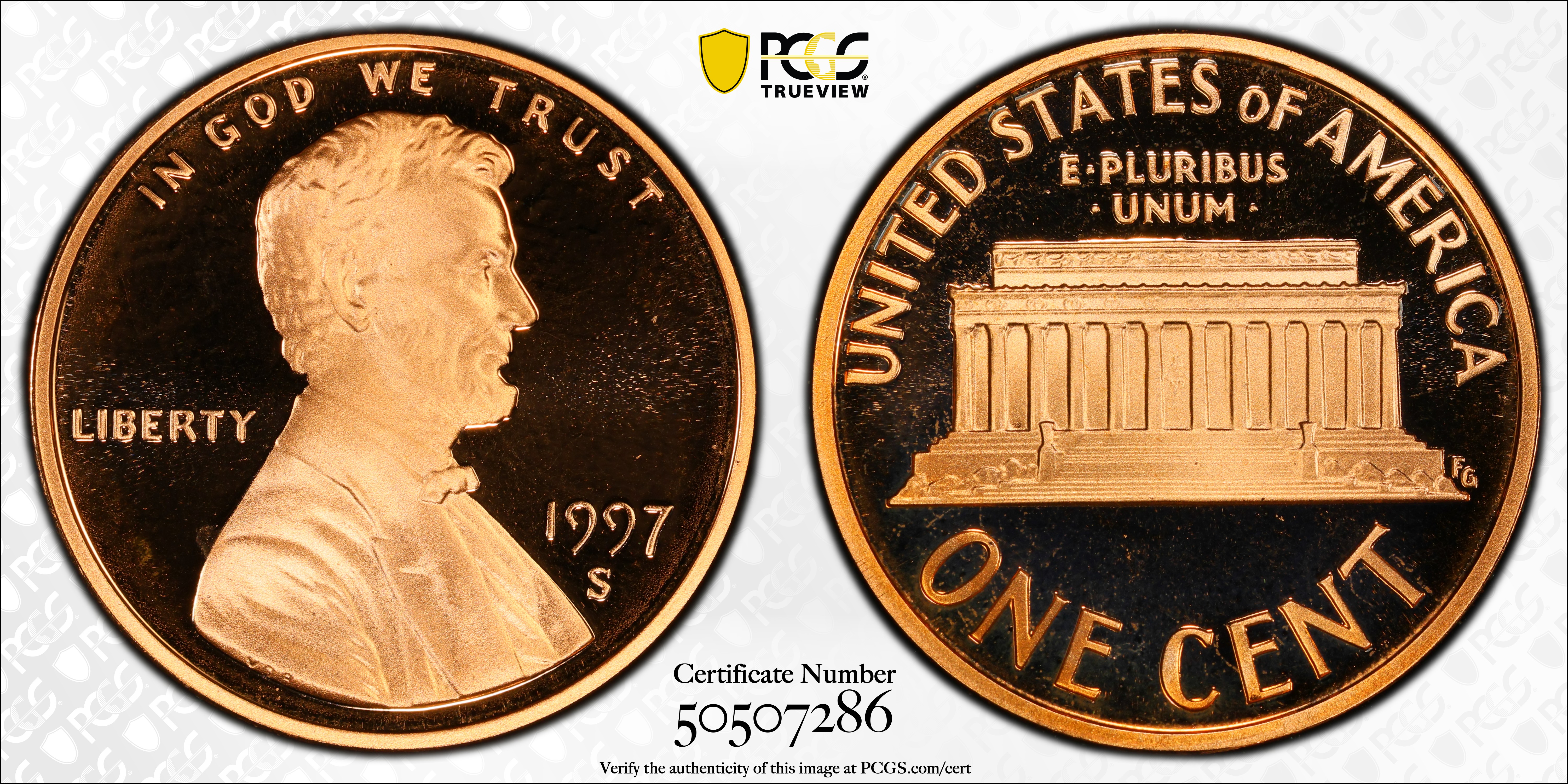 1997-S 1C, DCAM PR69DCAM Certification #50507286, PCGS #93524